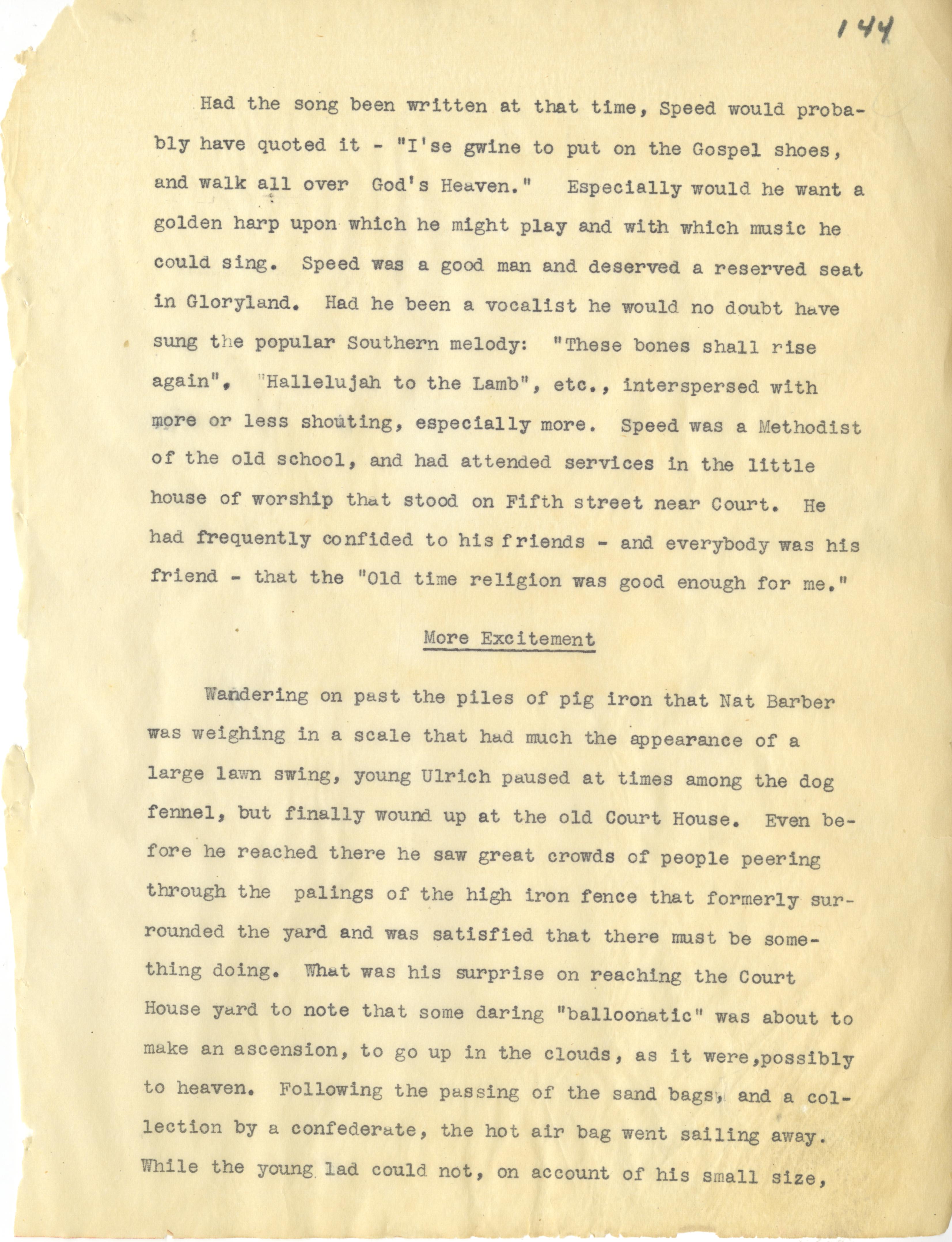 - Photo image of scanned scrapbook page. Pictured: typed page about a citizen named "Speed;" Ballooning in Portsmouth