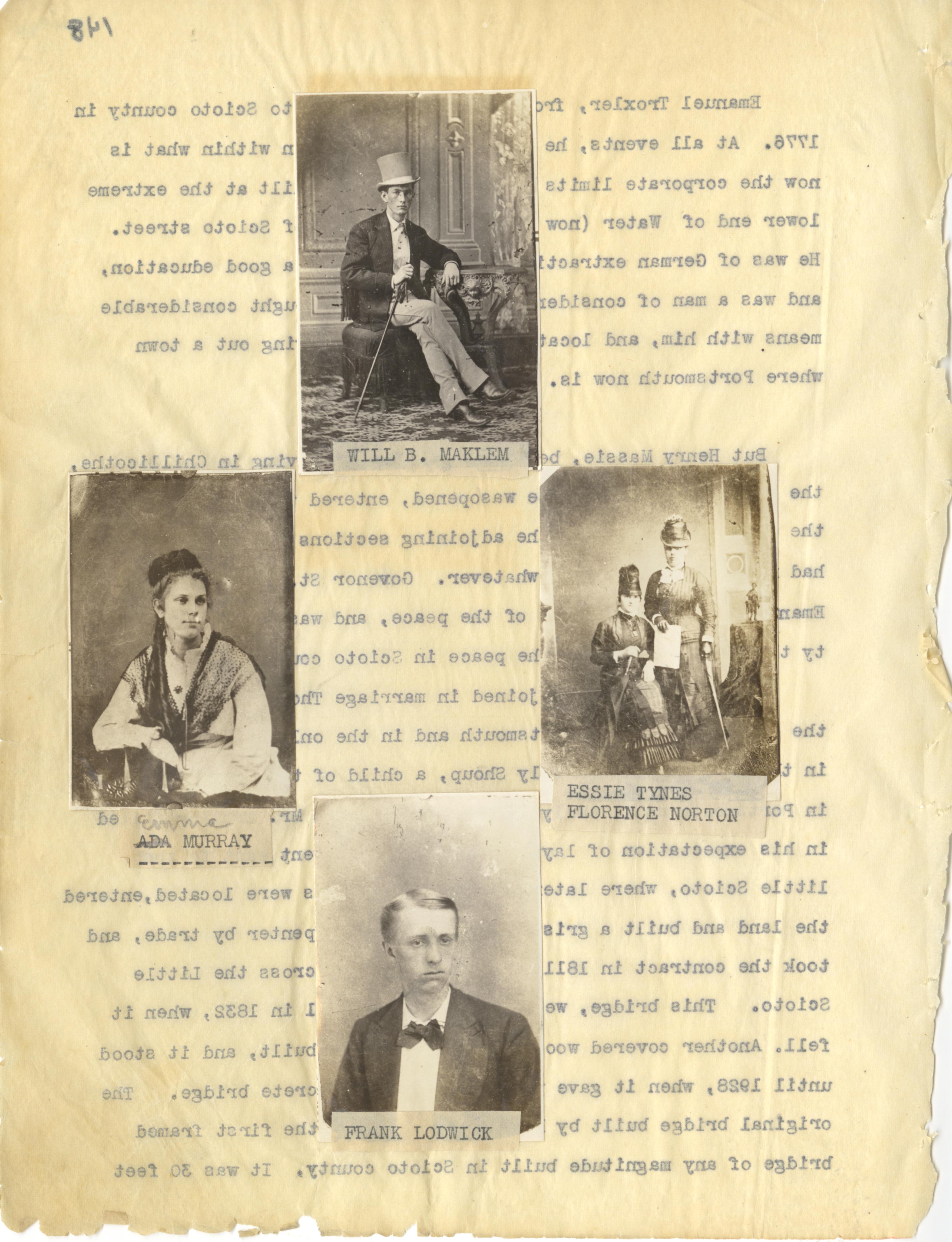 - Photo image of scanned scrapbook page. Pictured: Will B. Maklem; Ada Murray; Essie Tynes and Florence Norton; Frank Lodwick