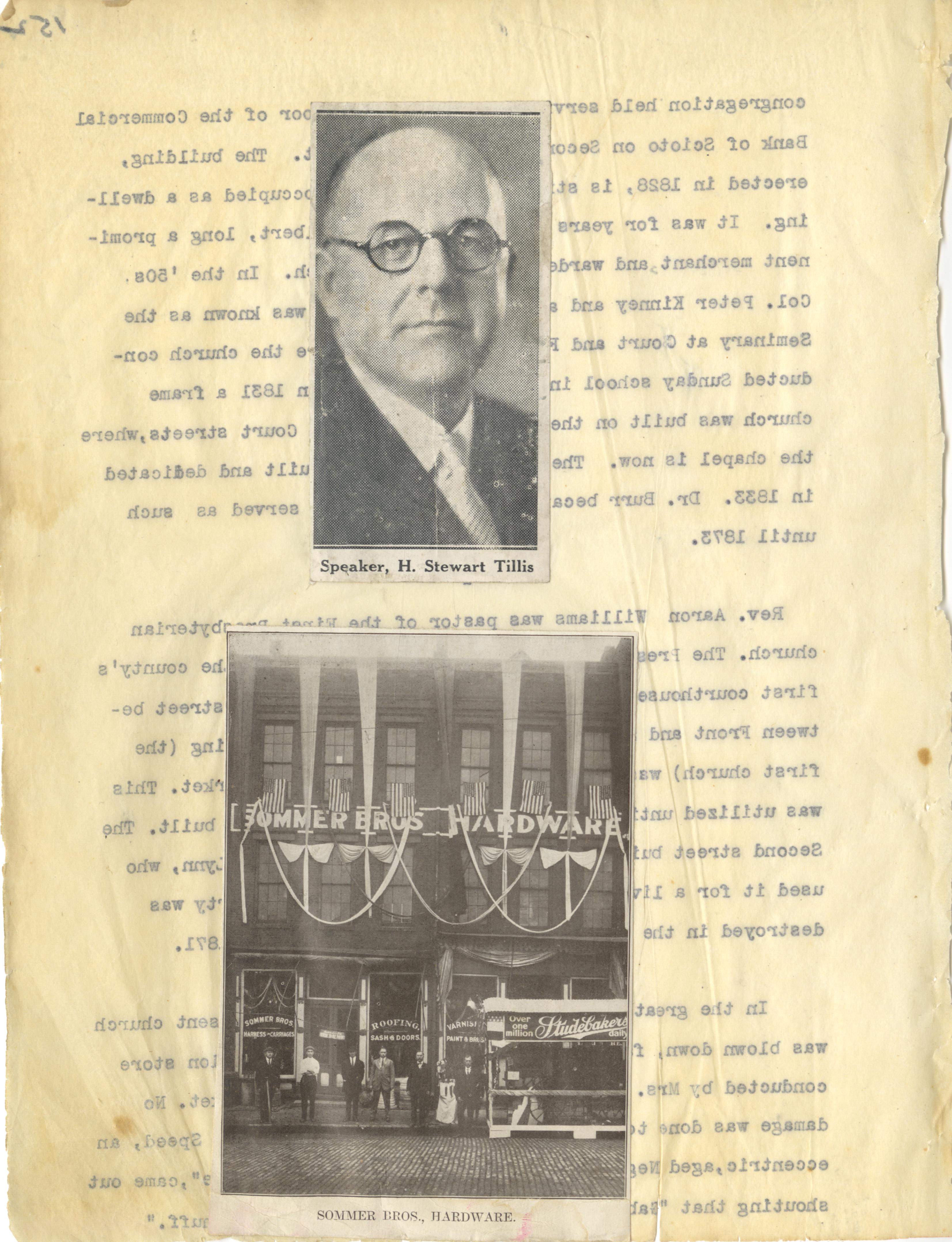 - Photo image of scanned scrapbook page. Pictured: Speaker, H. Stewart Tillis; Sommer Bros., Hardware