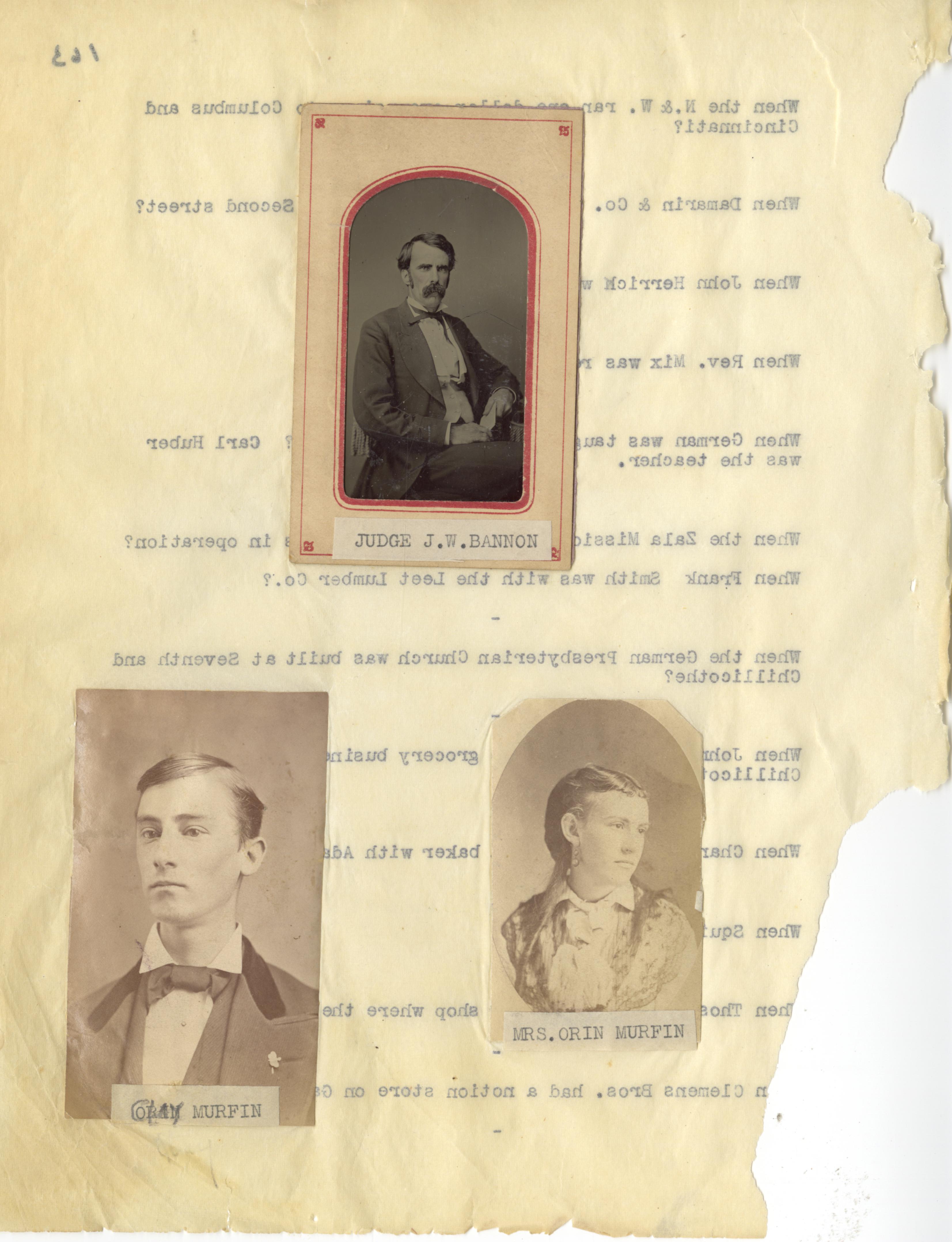 Henry A. Lorberg , “Judge J. W. Bannon; Clay Murfin; Mrs. Orin Murfin,” Scioto County Public Library Local History Digital Collection, accessed December 17, 2025, https://www.sciotolibrary.org/history/items/show/23056.