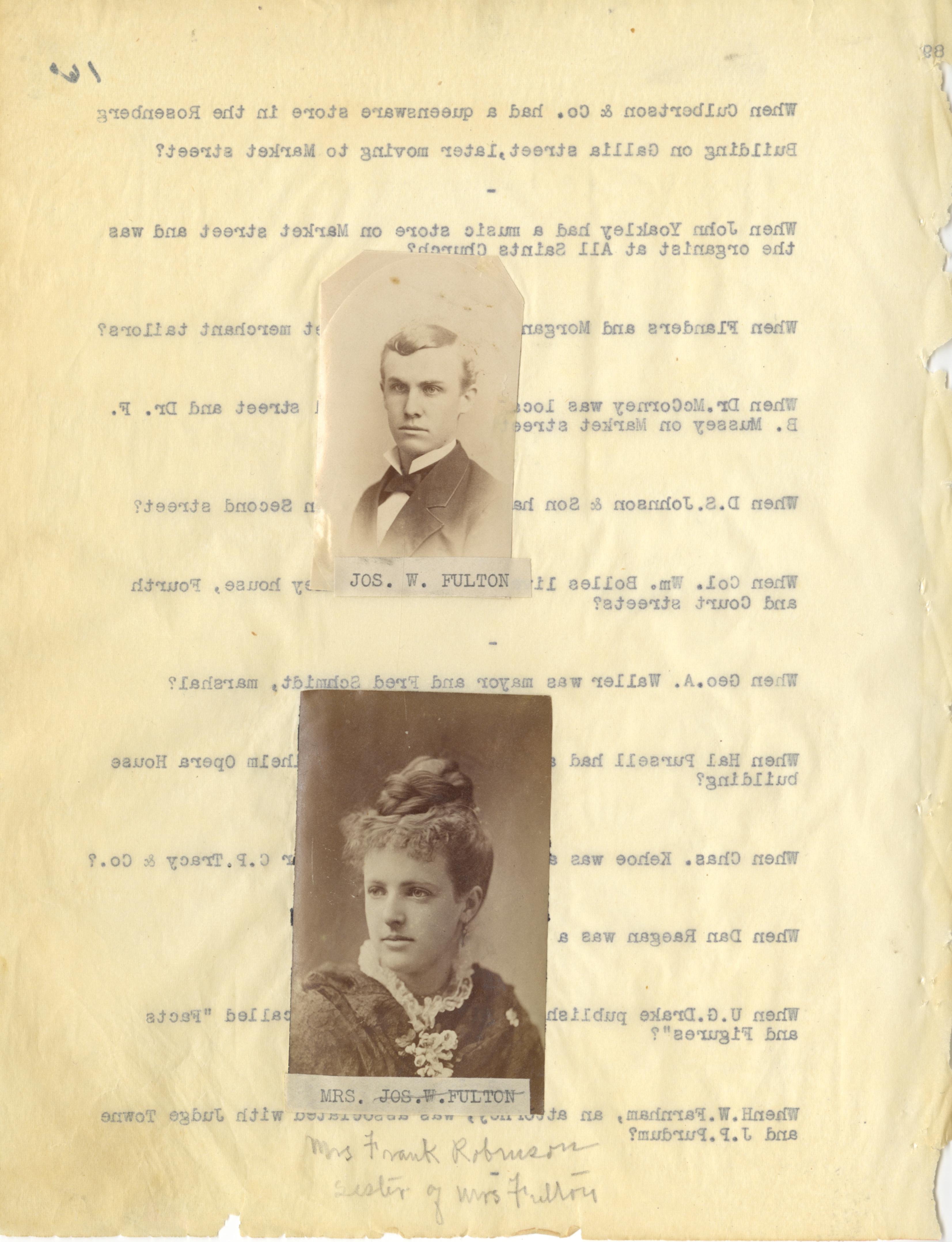 - Photo image of scanned scrapbook page. Pictured: Joseph Fulton; Mrs. Frank Robinson, sister of Mrs. Fuller