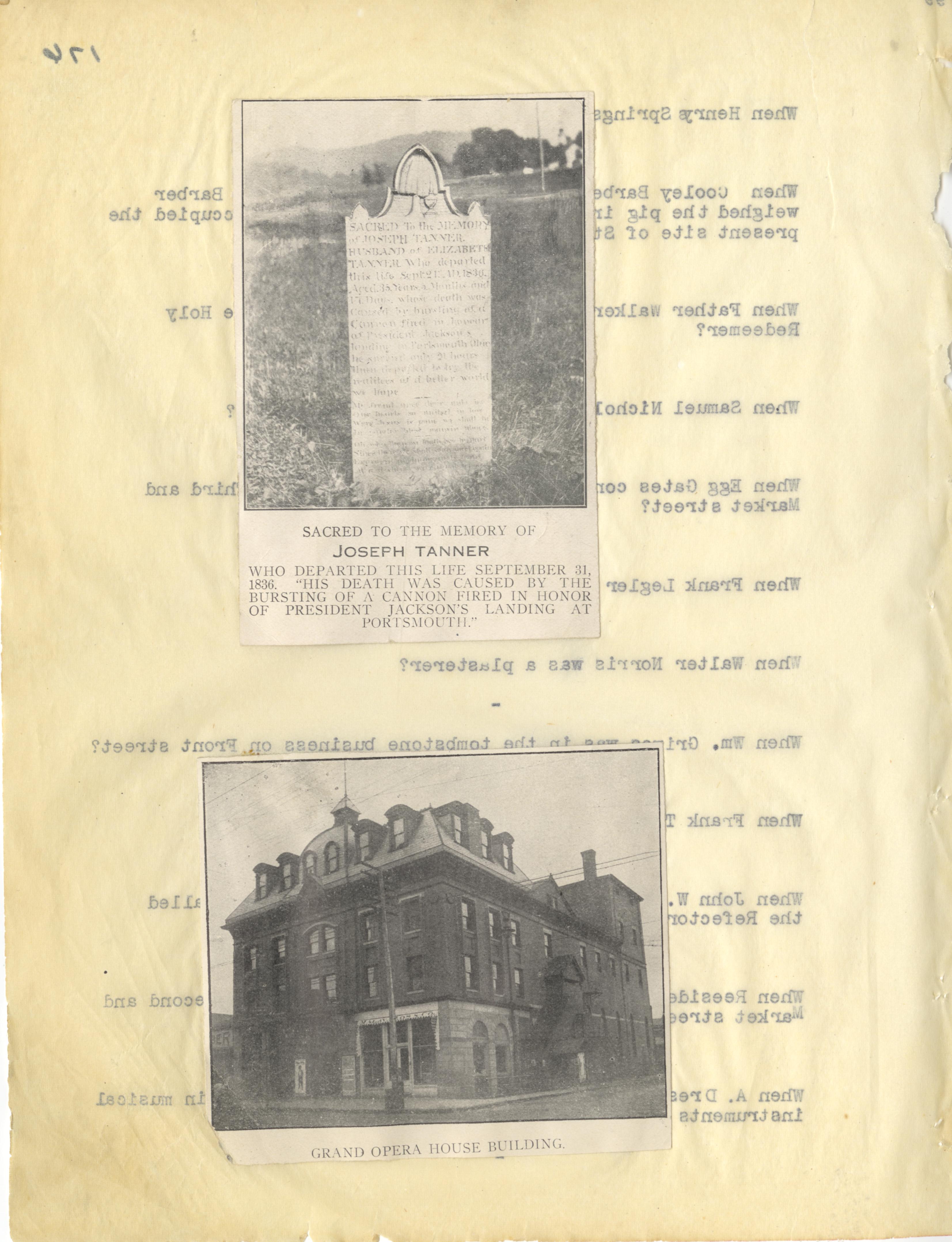 - Photo image of scanned scrapbook page. Pictured: Joseph Tanner; Grand Opera House Building