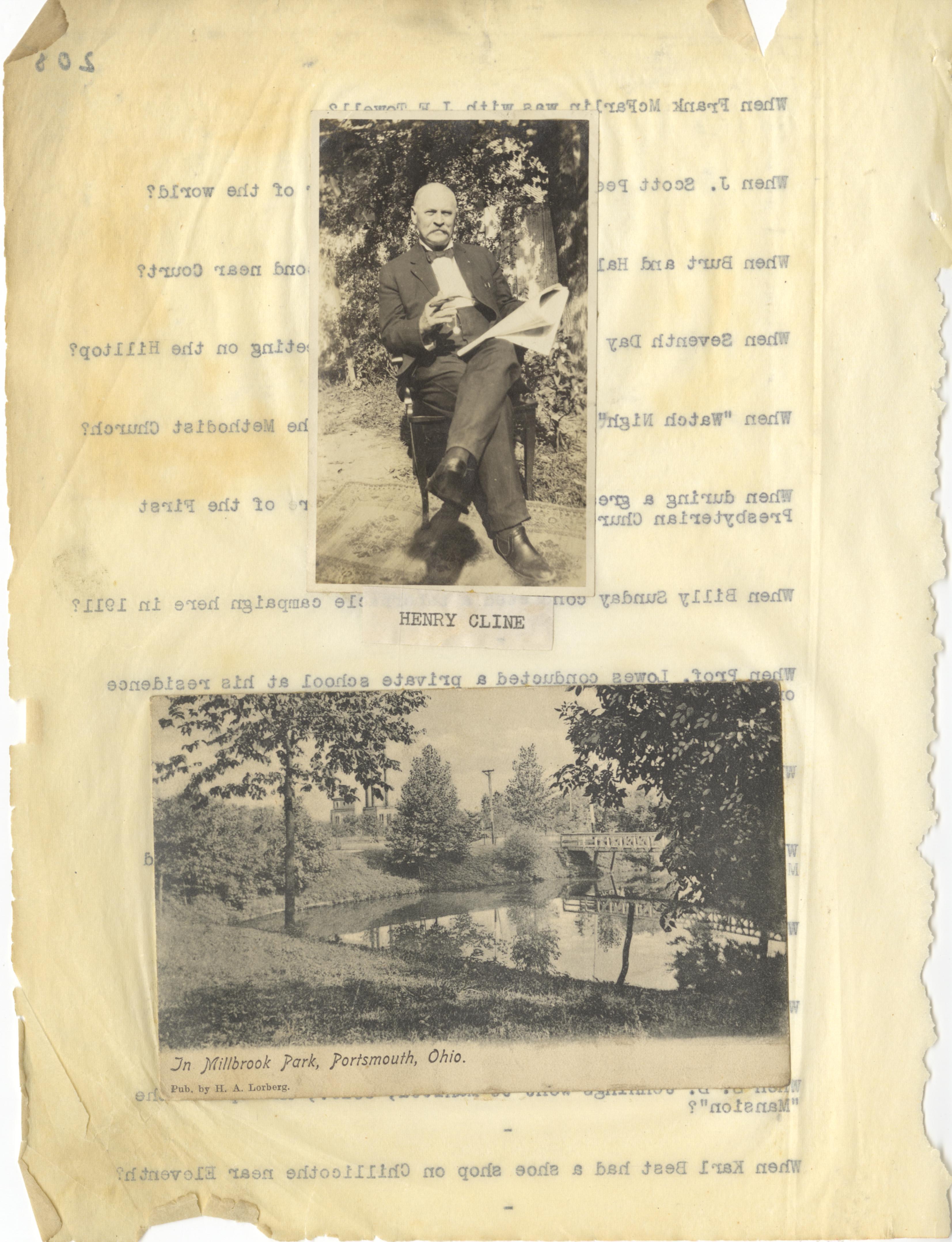- Photo image of scanned scrapbook page. Pictured: Henry Cline; Millbrook Park, Portsmouth, Ohio