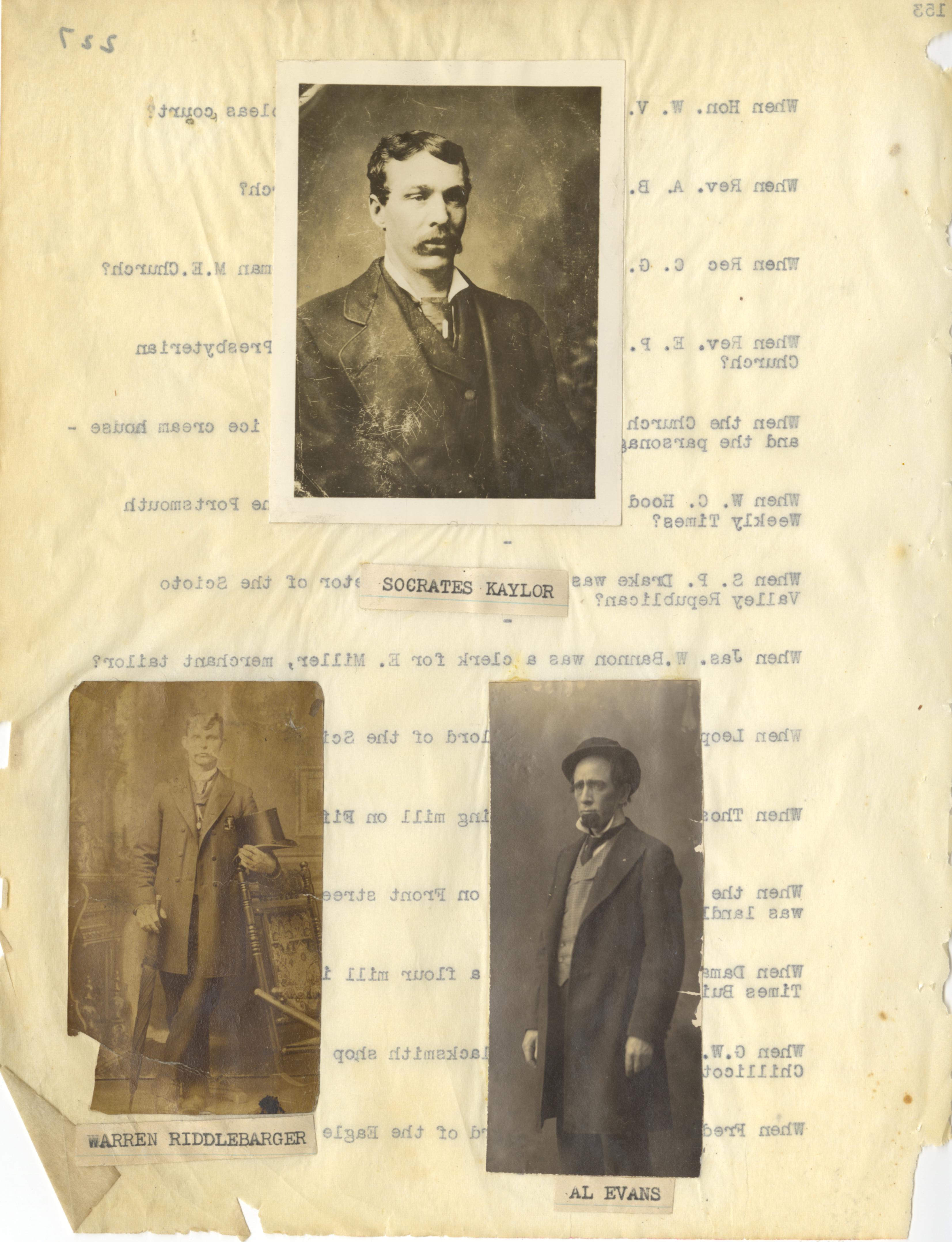 - Photo image of scanned scrapbook page. Pictured: Socrates Kaylor; Warren Riddlebarger; Al Evans