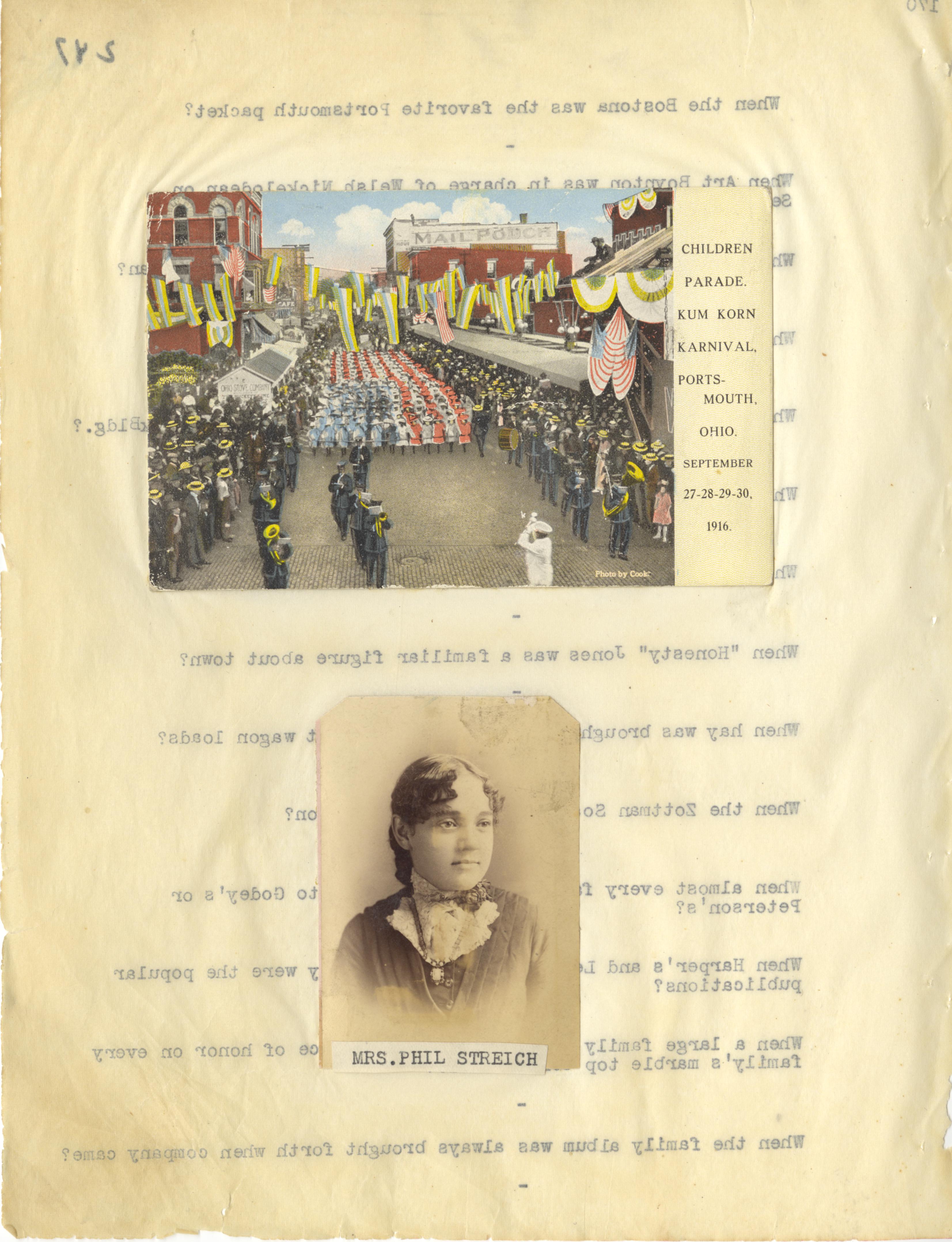- Photo image of scanned scrapbook page. Pictured: Children Parade, Kum Korn Karnival, Portsmouth, Ohio; Mrs. Phil Streich