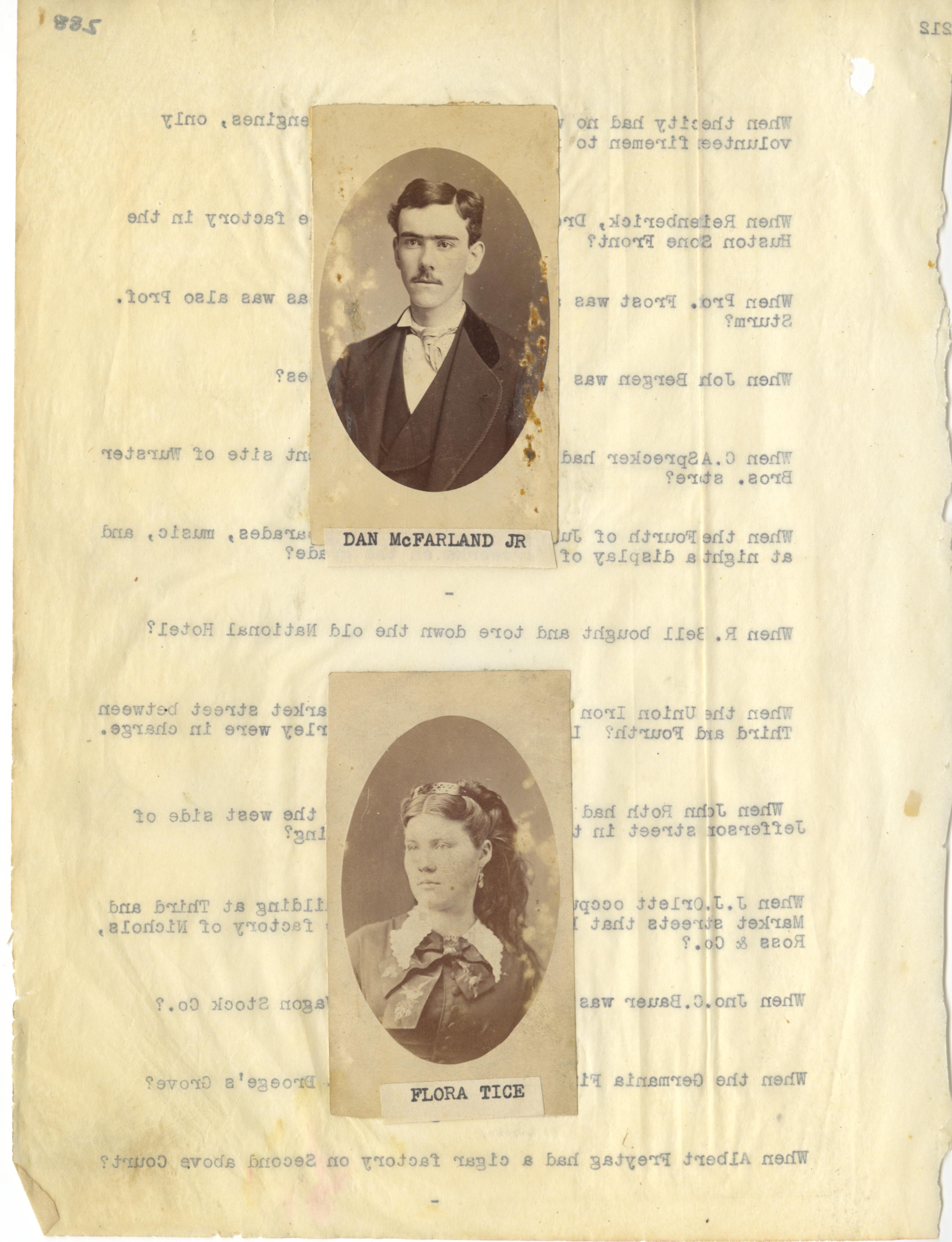 - Photo image of scanned scrapbook page. Pictured: Dan McFarland Jr; Flora Tice