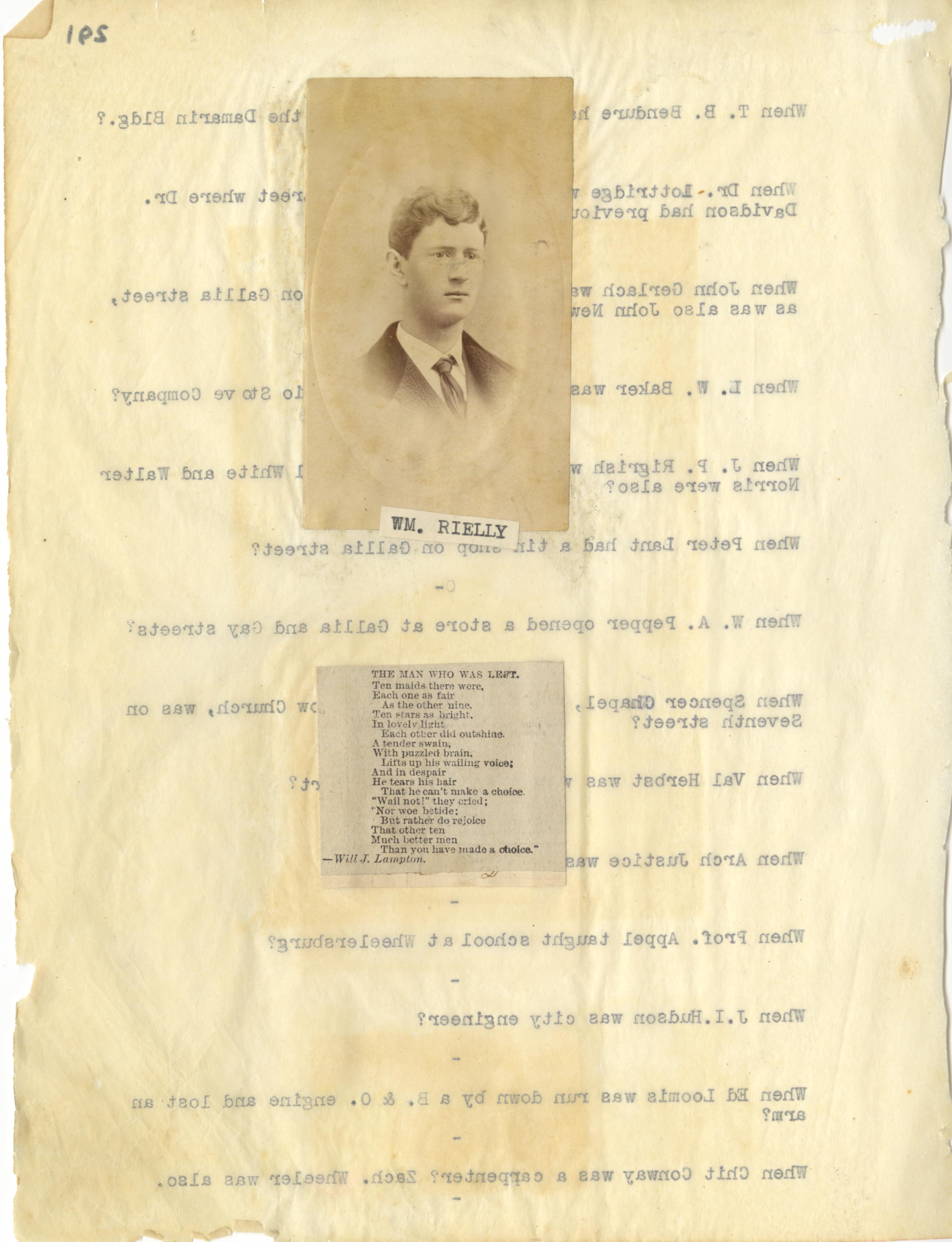 - Photo image of scanned scrapbook page. Pictured: William Rielly; The Man Who Was Left; Will J. Lampton