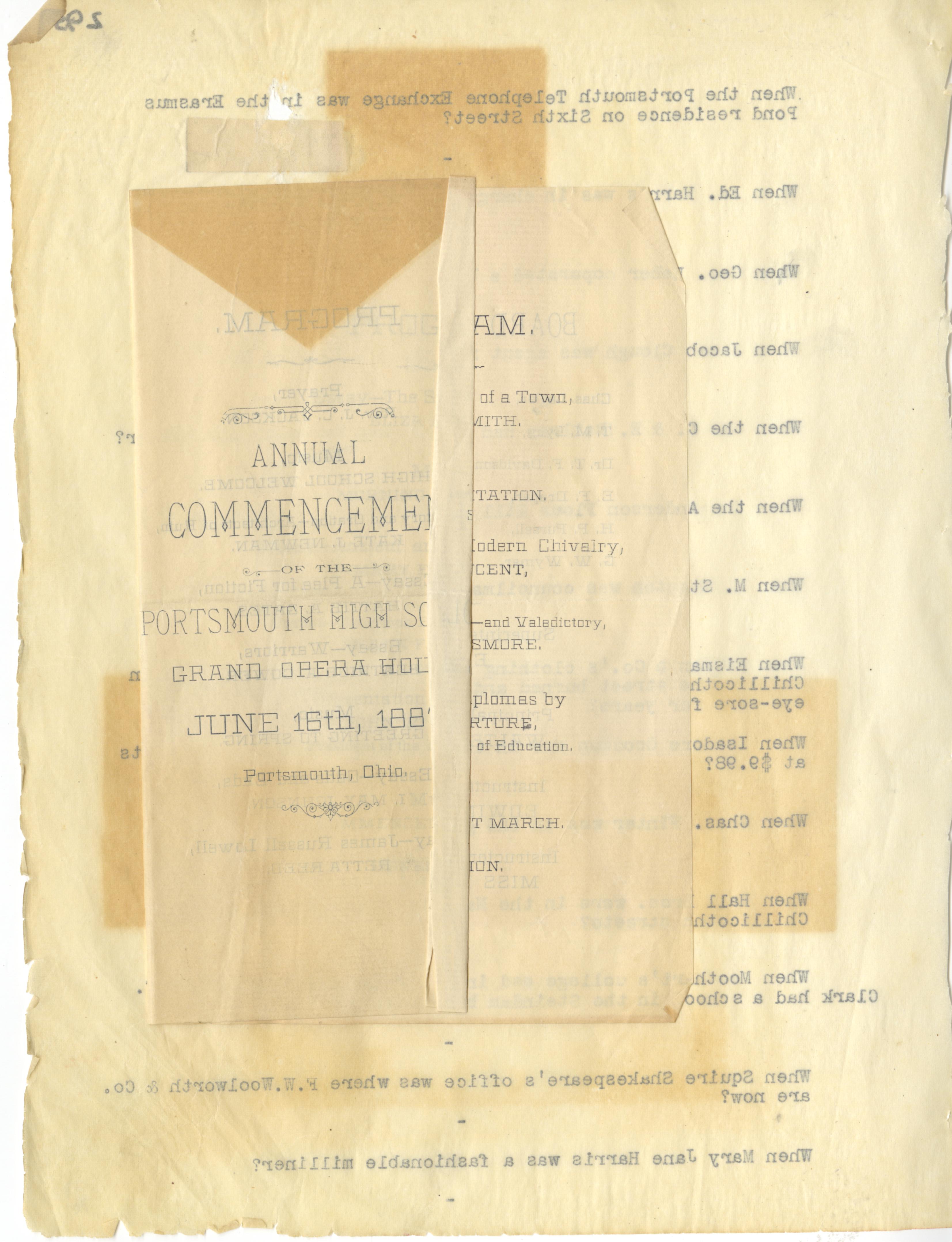 Henry A. Lorberg, “Annual Commencement; Portsmouth High School (188?),” Scioto County Public Library Local History Digital Collection, accessed December 16, 2025, https://www.sciotolibrary.org/history/items/show/23296.