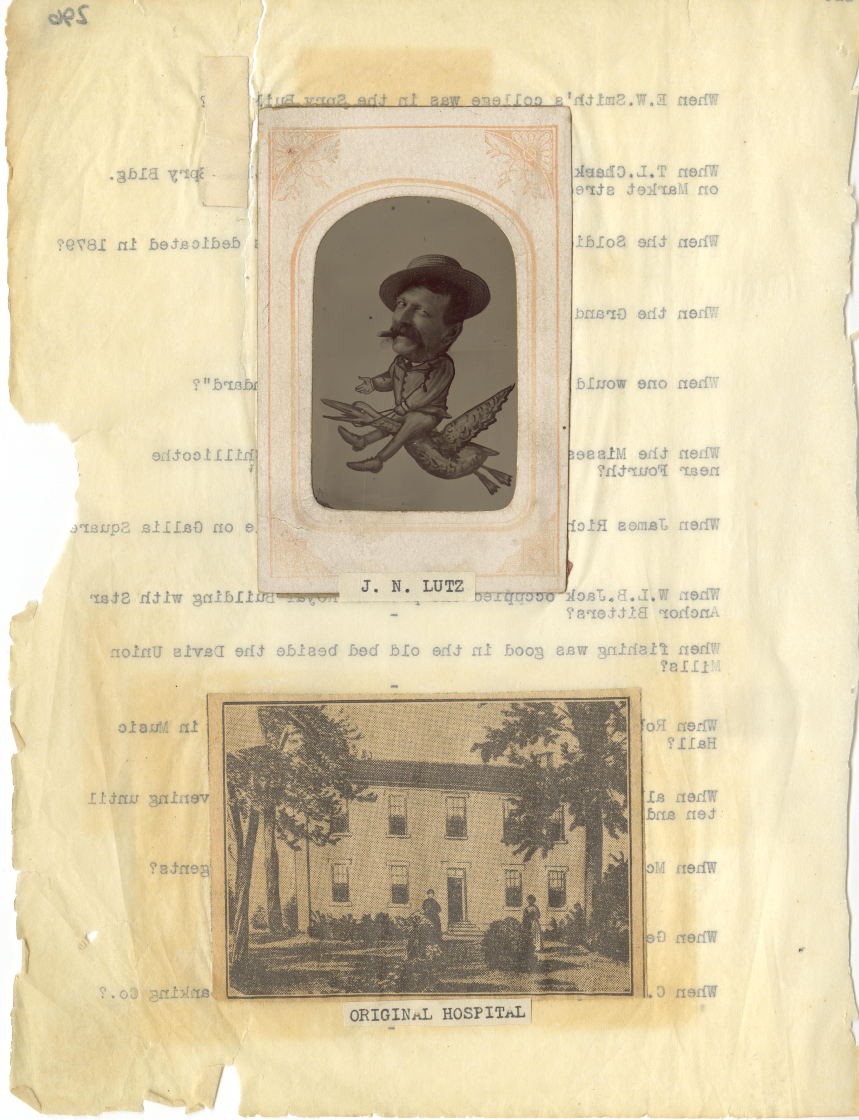 - Photo image of scanned scrapbook page. Pictured: J.N. Lutz; Original Hospital