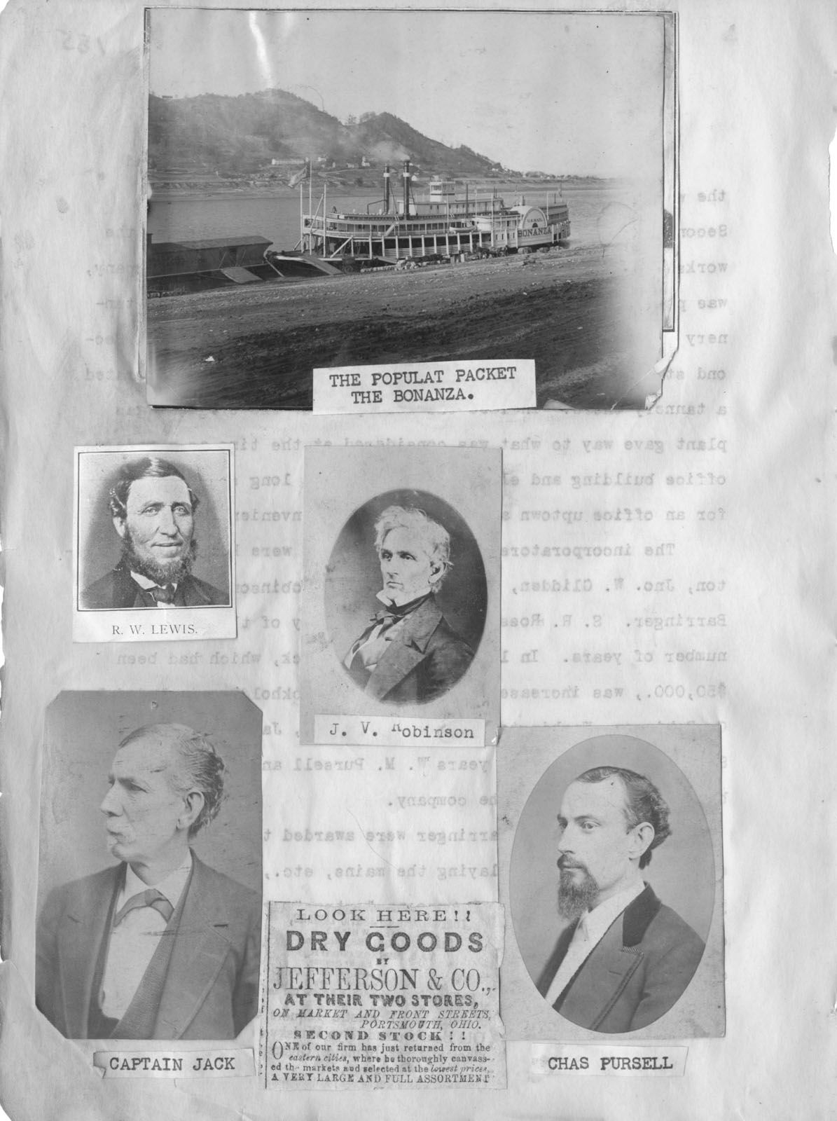 Henry A. Lorberg, “The Bonanza; R.W. Lewis; J.V. Robinson; Captain Jack; Charles Pursell,” Scioto County Public Library Local History Digital Collection, accessed December 13, 2025, https://www.sciotolibrary.org/history/items/show/2335.