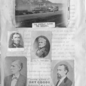 - Scanned unnumbered page from Henry A. Lorberg scrapbook containing black & white images of The Bonanza, steamboat; R.W. Lewis; J.V. Robinson; Captain Jack; and Charles Pursell. A clipped print ad for Jefferson & Co. Dry Goods.