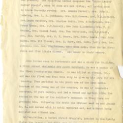 Mrs. Amanda Pursell; Mrs. John N. Lodwick; Mrs. L.N. Robinson; Mrs. E.B. Greene; Mrs. B.B. Gaylord; Mrs. Laura Watkins; Mrs. Charles Smith; Mrs. A. McFarland; Mrs. Henry Towne; Mrs. J.M. Merrell; Mrs. John K. Lodwick; Mrs. T.J. Graham; Mrs. Samuel Reed; Mrs. Dan McFarland; Mrs. E.P. Pratt; Mrs. James Martin; Mrs. O.F. Moore; Mrs. Robert Lewis; Mrs. John Elden; Mrs. Eli Glover; Mrs .E. Burr; Mrs. Robert Bell; Mrs. George Johnson; Mrs. James Stephenson; Miss Emma Bell; Miss Marian Firestone; Miss Lizzie Glover; John Barner; William Elden; First Presbyterian Church; Tracy Park; Dr. George Bailey; Byerly; Maxwell Building; Bailey Post G.A.R. - Creator