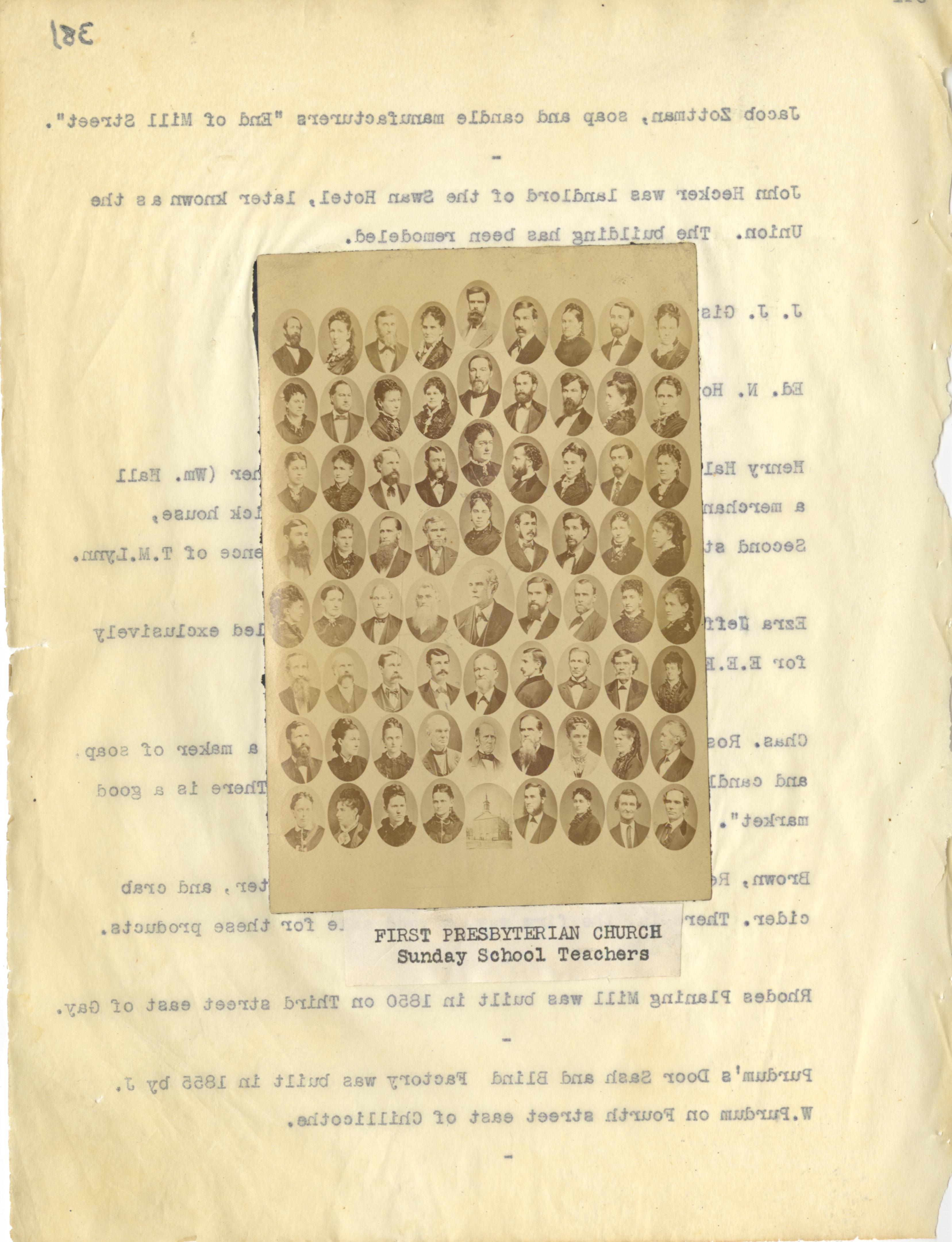 - Photo image of scanned scrapbook page. First Presbyterian Church; Sunday School Teachers