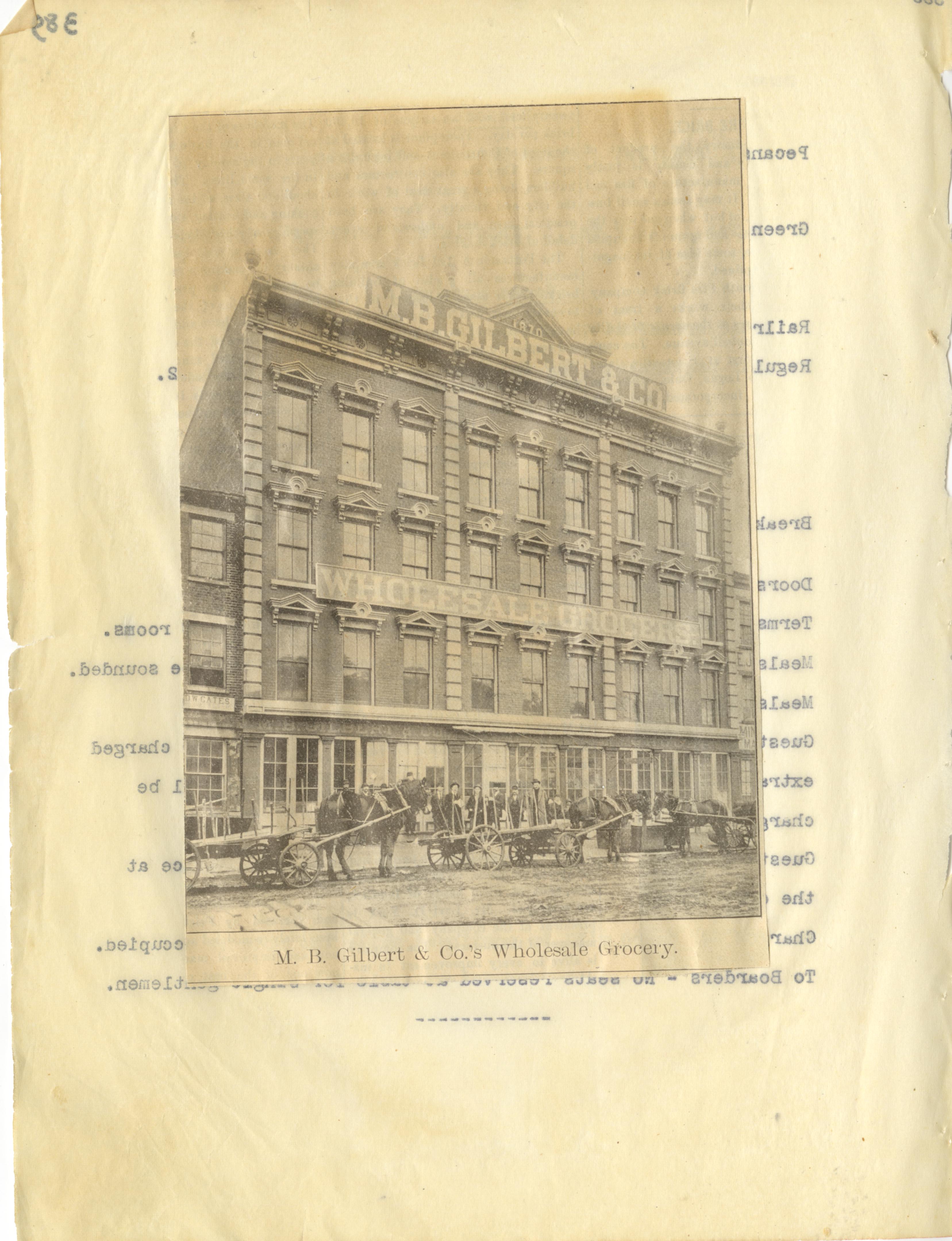 - Photo image of scanned scrapbook page. M.B. Gilbert & Co; Wholesale Grocers