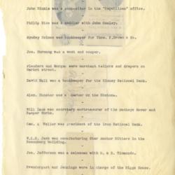- A.J. Grimes; Lloyd, Tracy & Co; John Hickle; Republican Office; Philip Hise; John Cooley; Syndey Holmes; Thomas P, Brown & Co; Joseph Hurnung; Flanders and Morgan; David Hall; Kinney National Bank; Alex Hunster; Bostona; Will Iams; Buckeye Mower; Reeper Works; George A. Waller; Iron Nation Bank; W.L.B. Jack; Star Anchor Bitters; Rosenberg Building; Joseph Jefferson; M. & S. Timmonds; Prendergast and Jennings; Biggs House; Rev. Hosea Jones; Dr. Burr's; All Saints Church