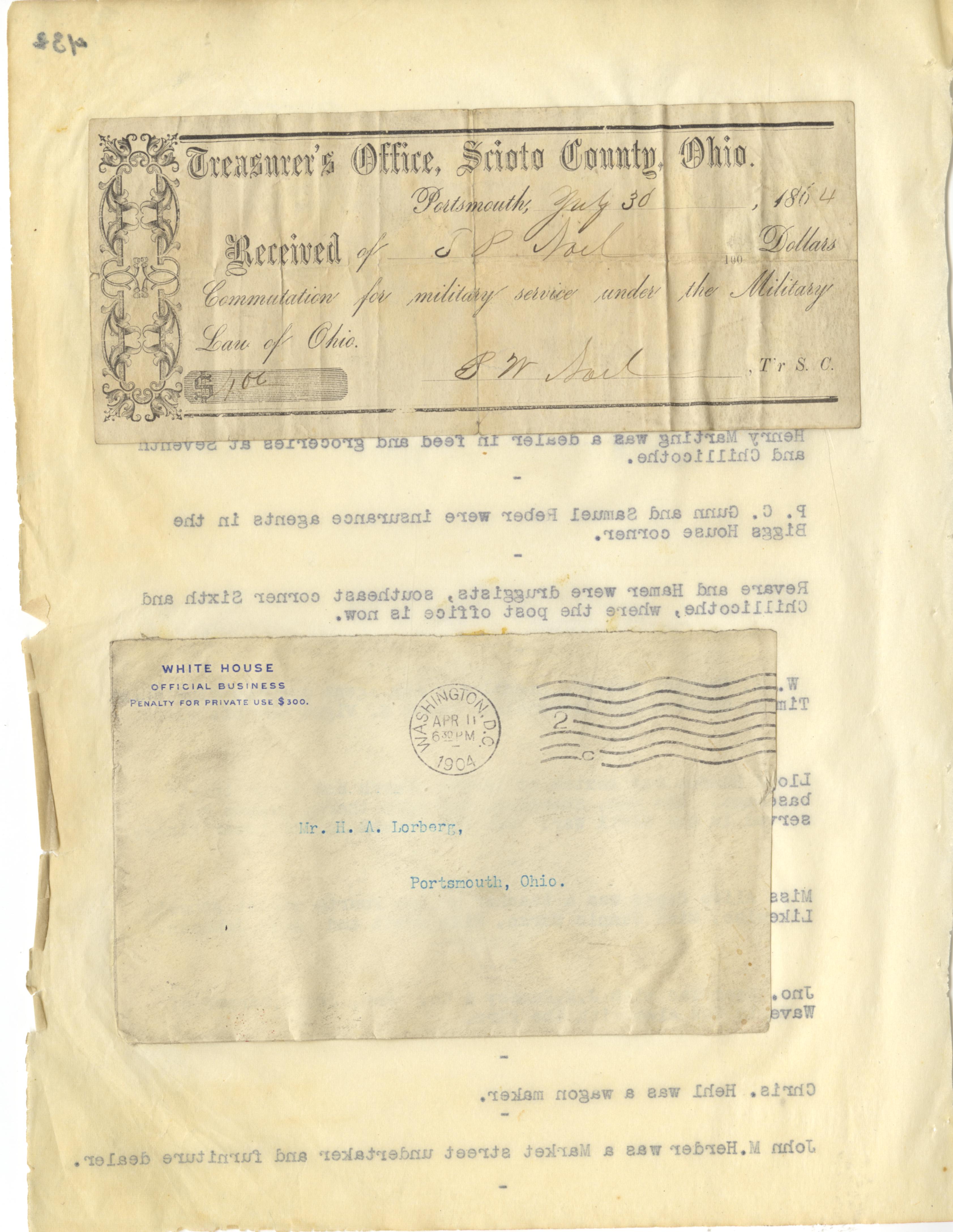 Henry A. Lorberg, “White House (1904); H.A. Lorberg; Treasurer's Office (1864),” Scioto County Public Library Local History Digital Collection, accessed December 14, 2025, https://www.sciotolibrary.org/history/items/show/23546.
