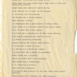 - Lewis Currie; Thomas and Foote Hall; Louis Hamer; Louis Revare; Lloyd Henson; Sexton; Christ Church; Alex Hunster; Bonanza; A. Hurth; George W. Brown; Leo Koerner; Adam King; B.F. Cunningham; Silas Graham; Varner House; Chas. W. White; W.L.B. Jack' Star Anchor Bitters; John Biegel; Grapevile Hotel; S.E. Varner; Stephen Edmunds; S. Bilber; F.A. Bassler; J.J. Culbertson; David Strahm; Barton and Gibbs; Ross Palmer; G.W. Gibbs; Enos Reed; Prof. Daniels; Rose Ridge Young Ladies' Seminary; Thomas Dinsmore; Henry Dinsmore; Robt. S. Drake; J.M. Rumsery & Co