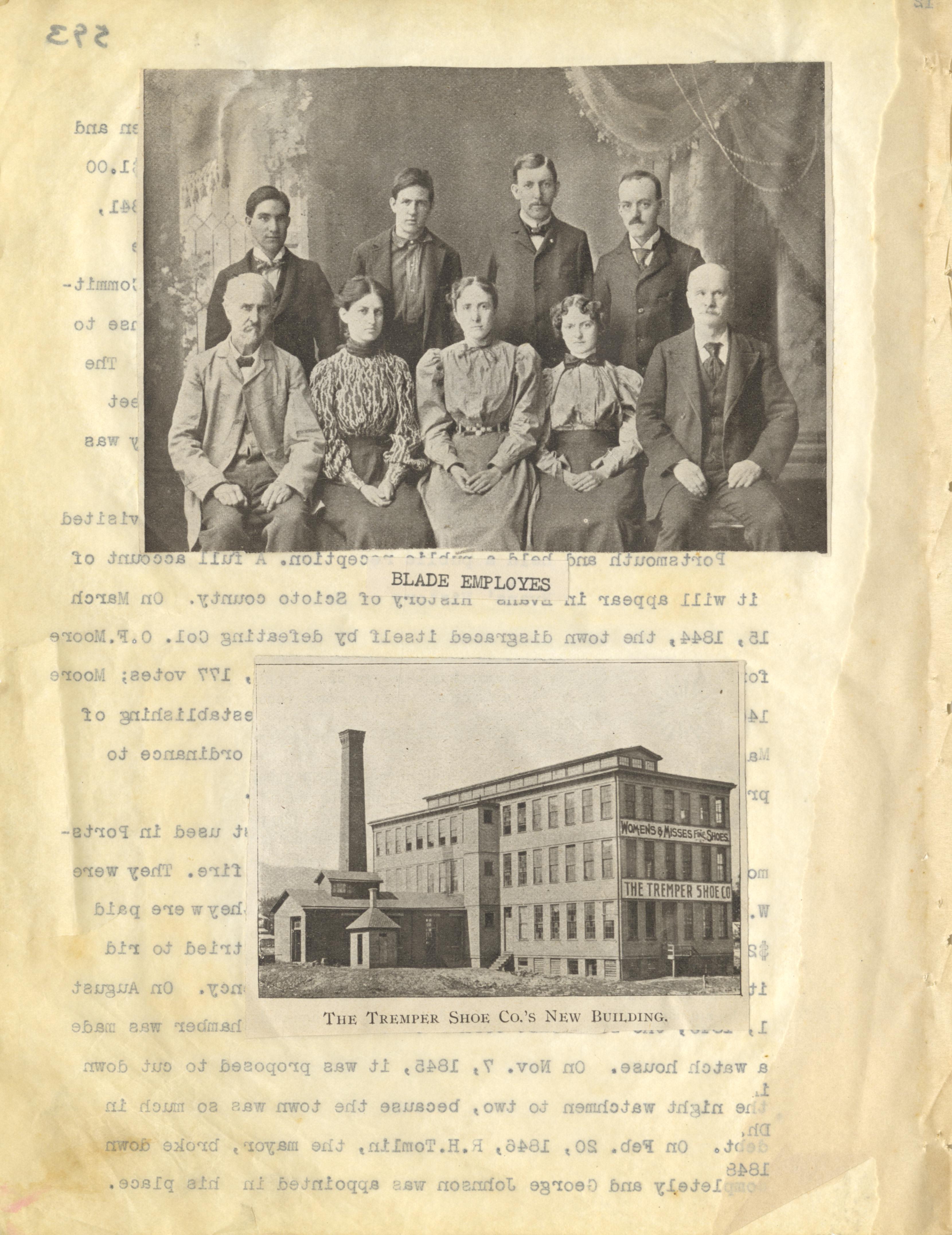 - Photo image of scanned scrapbook page. Pictured: Blade Employe(e)s; the Tremper Shoe Company's New Building