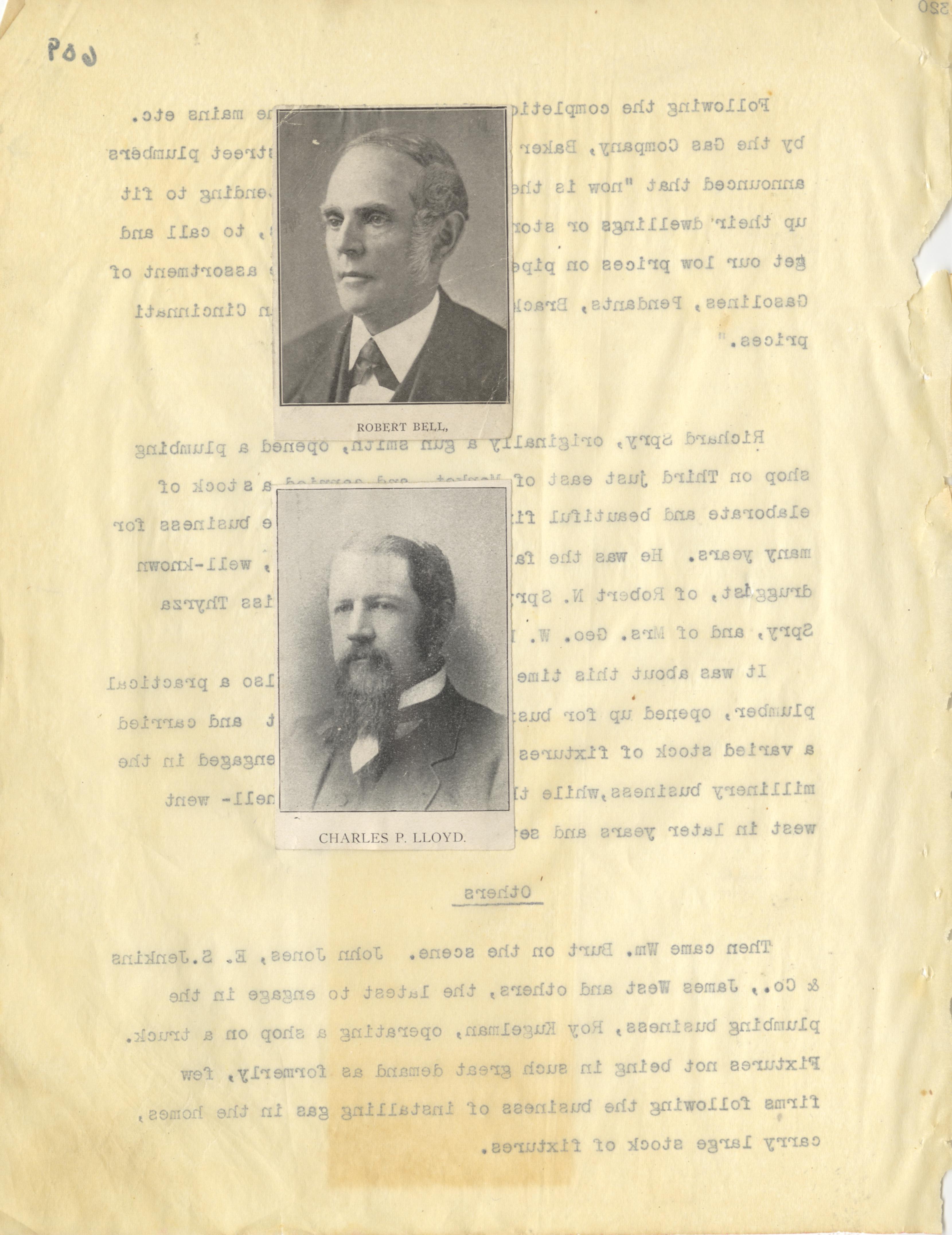 - Photo image of scanned scrapbook page. Pictured: black and white photos of Robert Bell; Charles P. Lloyd