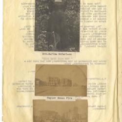 - Photo image of scanned scrapbook page. Pictured: Martha McFarland; Taylor House Fire