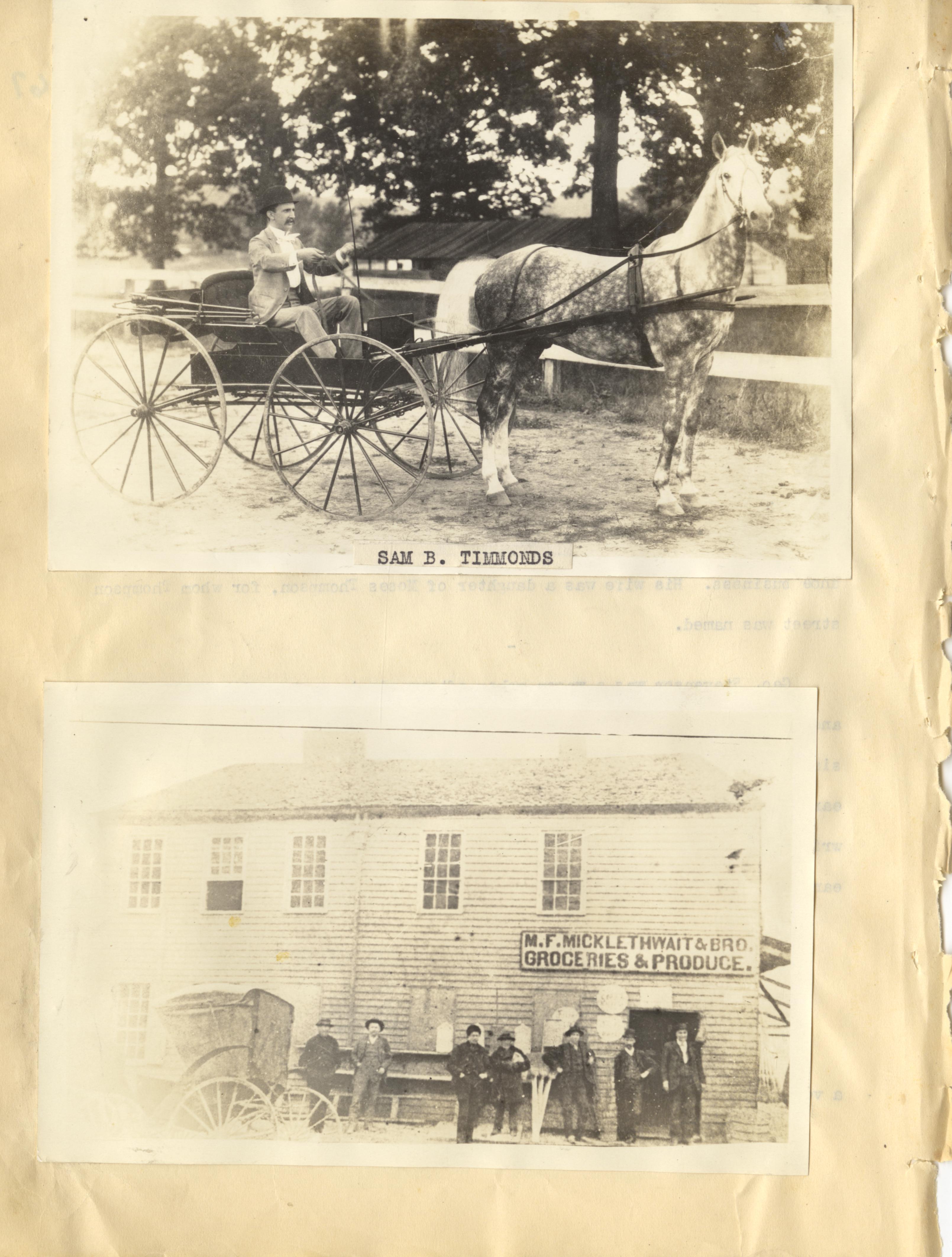 - Photo image of scanned scrapbook page. Sam B. Timmonds; M.F. Micklethwait & Bro.; Groceries & Produce