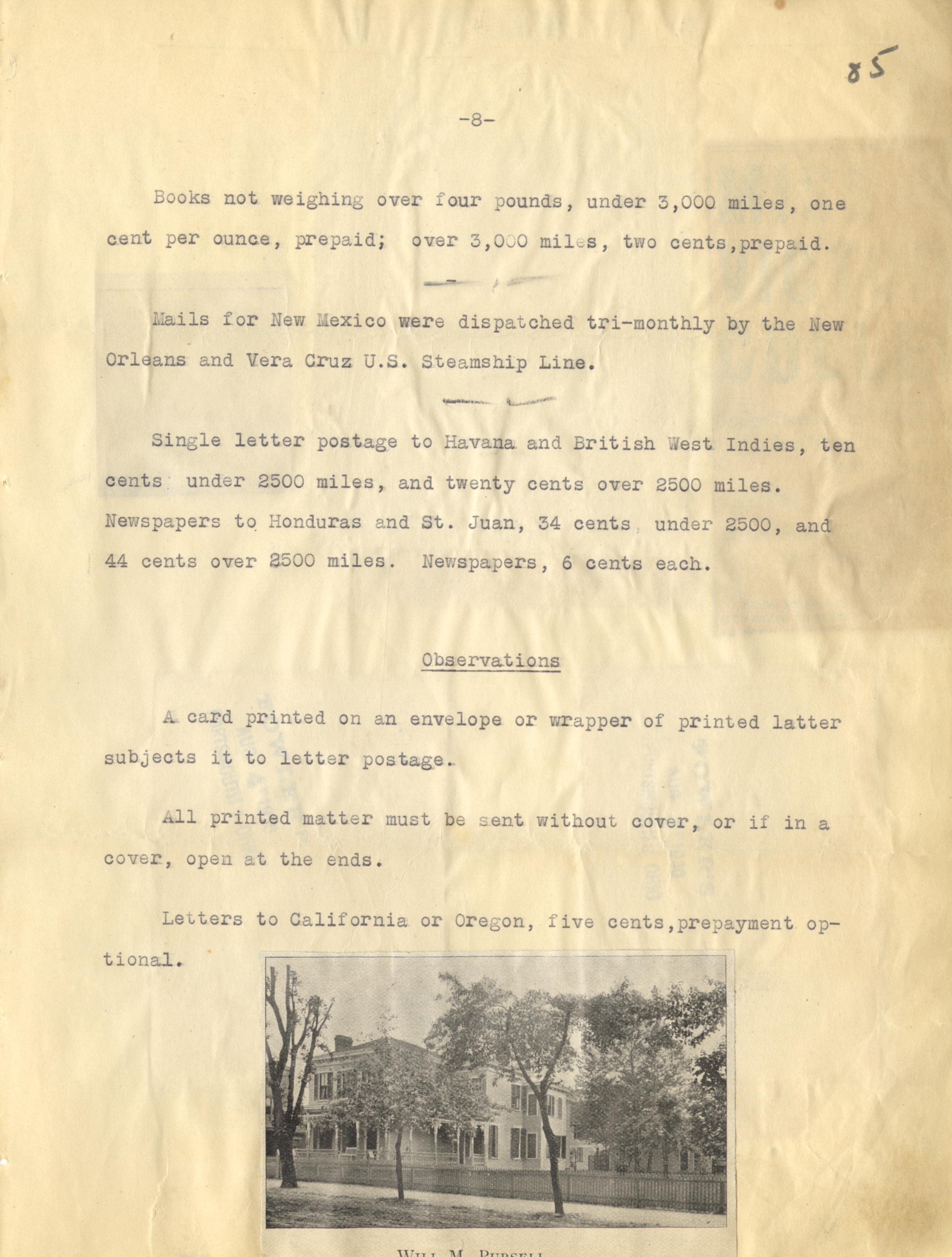 Postage; Books; New Mexico; Havana; British West Indies; Honduras; St. Juan; California; Oregon; Will M. Pursell