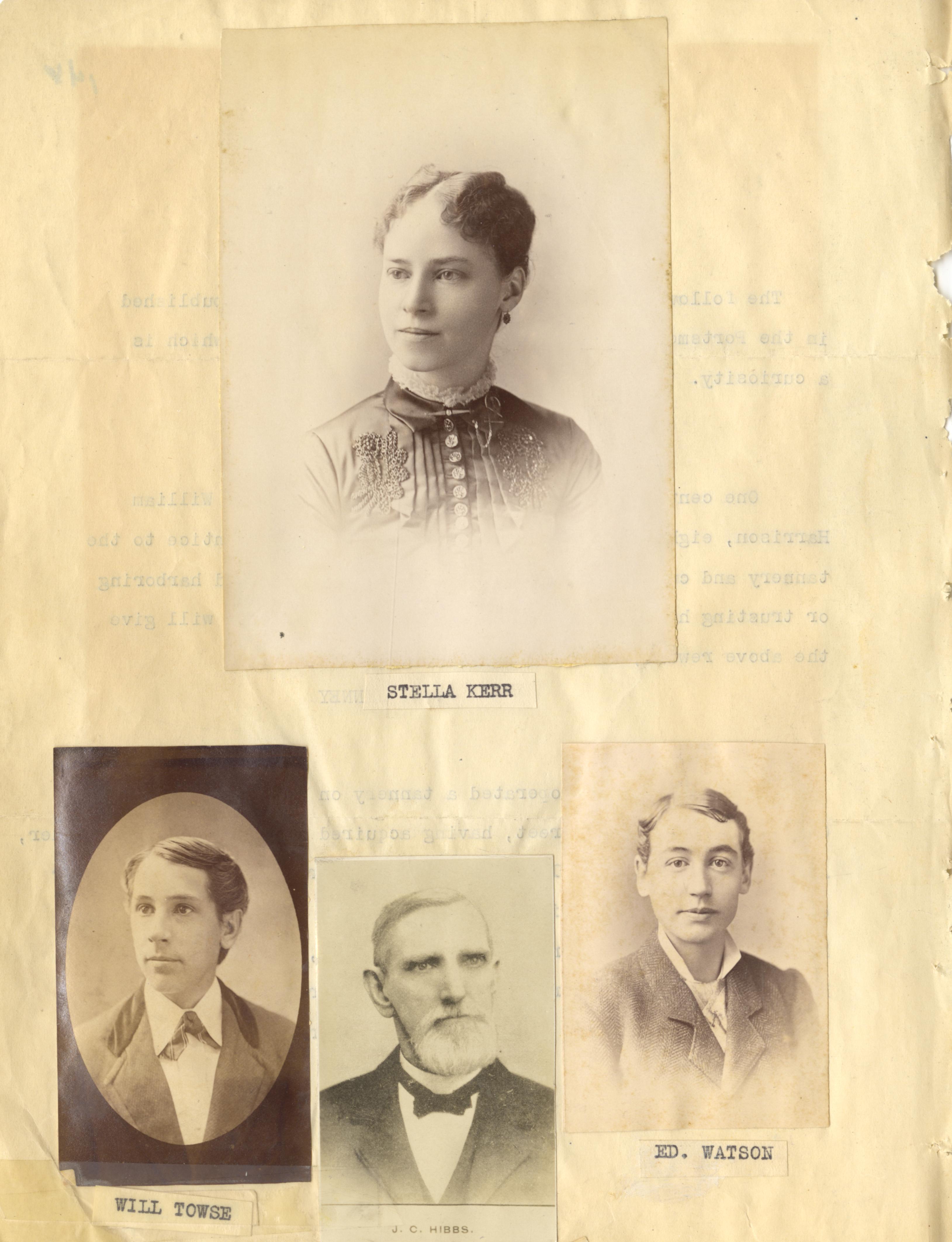 - Photo image of scanned scrapbook page. Stella Kerr; Will Towse; J.C. Hibbs; Edward Watson