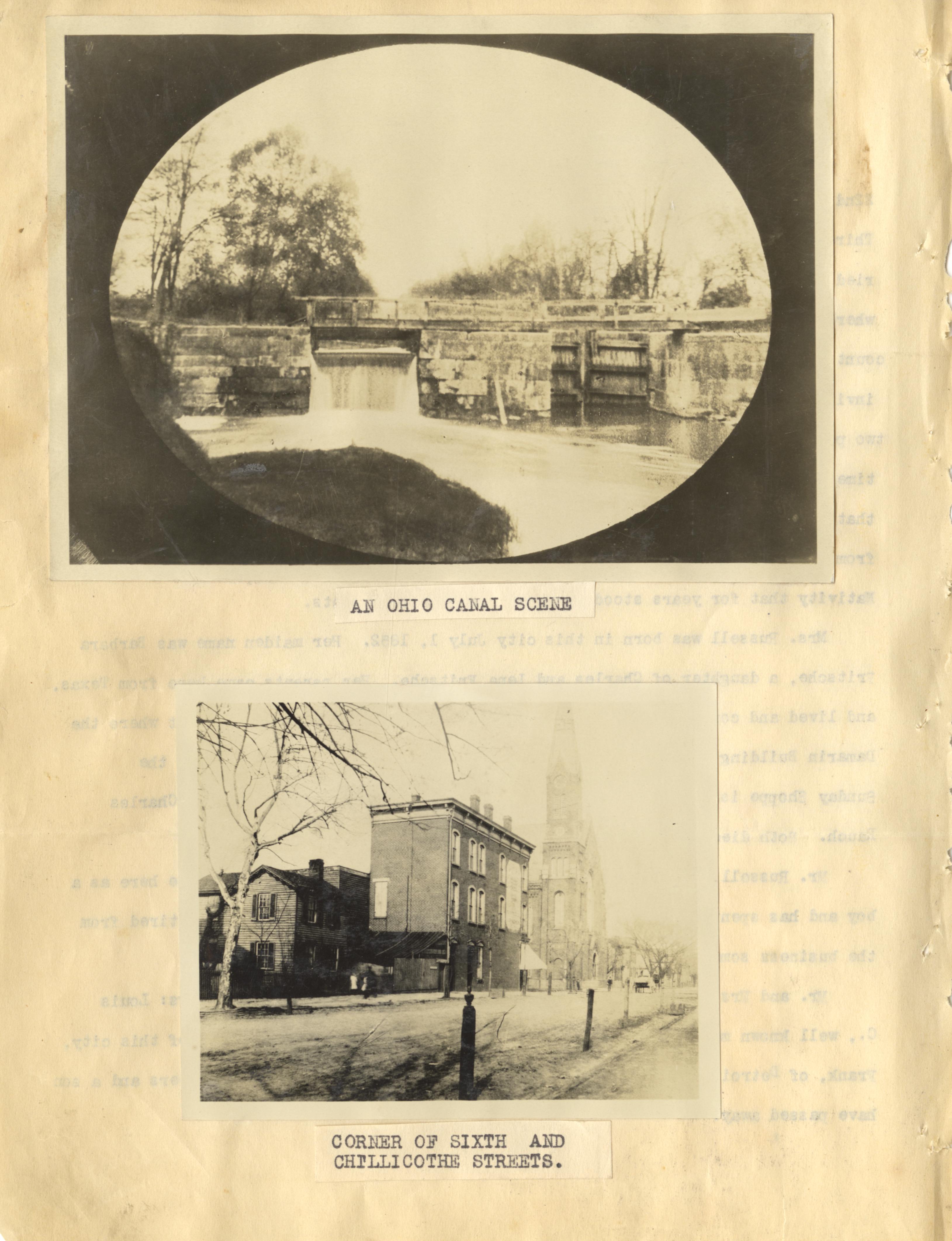 - Photo image of scanned scrapbook page. An Ohio Canal Scene; Corner of Sixth (6th) and Chillicothe Streets