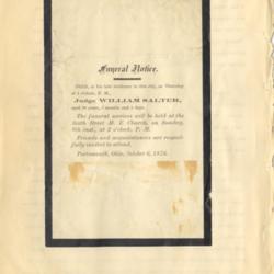 Henry A. Lorberg, “Funeral Notice; Judge William Salter (1876); Sixth (6th) Street M.E. Church,” Scioto County Public Library Local History Digital Collection, accessed December 14, 2025, https://www.sciotolibrary.org/history/items/show/24188.