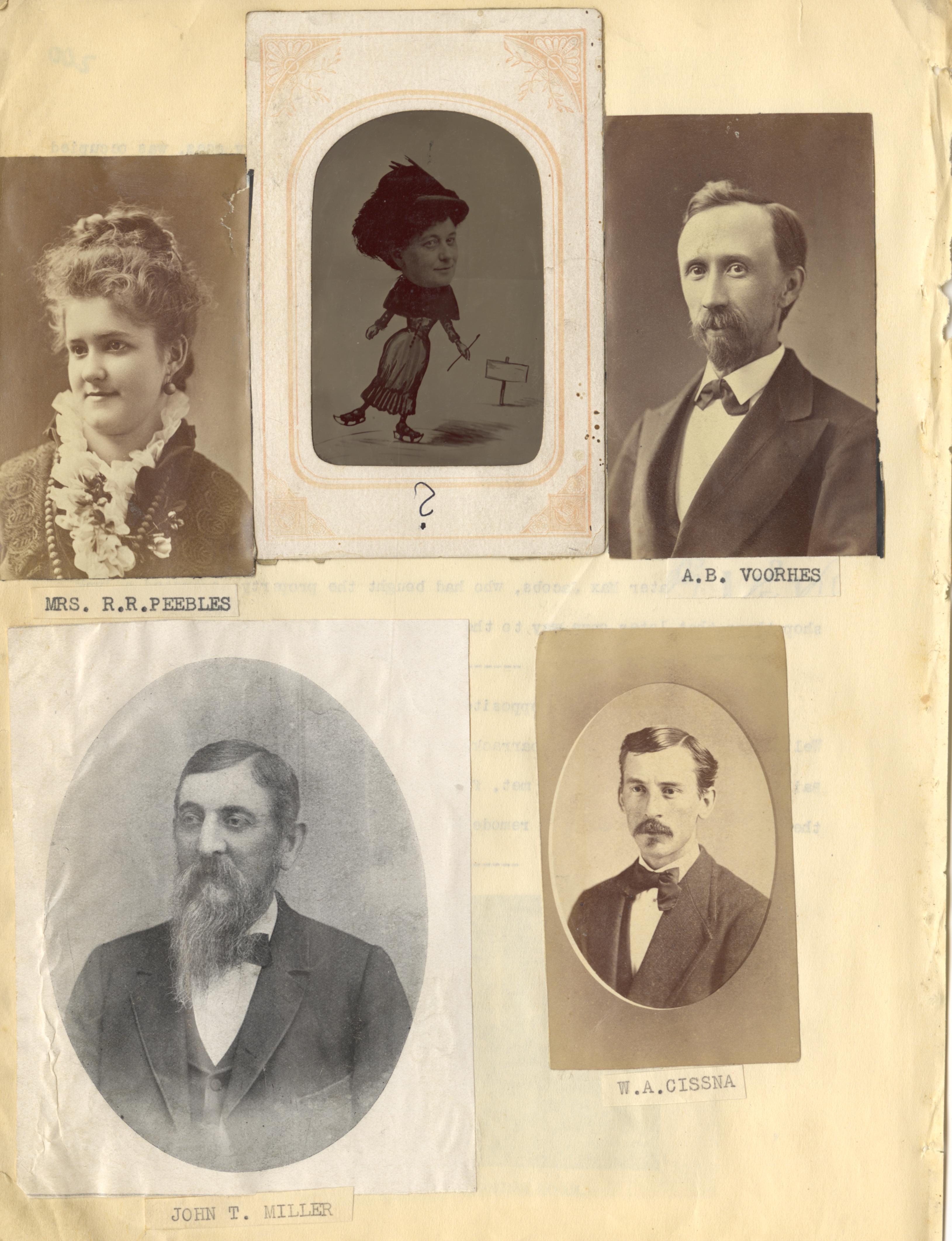 - Photo image of scanned scrapbook page. Mrs. R.R. Peebles; A.B. Voorhes; John T. Miller; W.A. Cissna; Unidentified Woman
