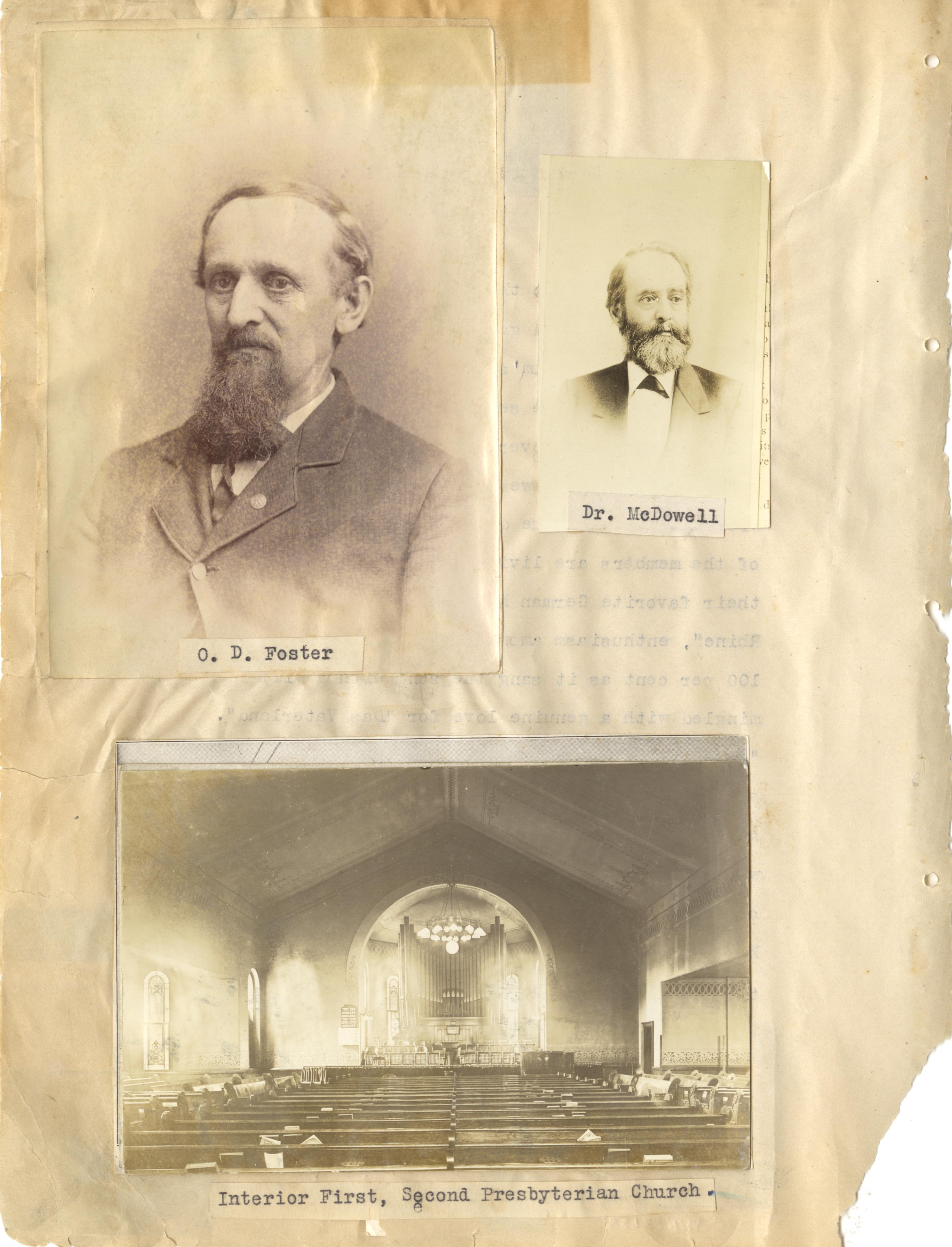 - Photo image of scanned scrapbook page. O. D. Foster; Dr. McDowell; First, Second Presbyterian Church