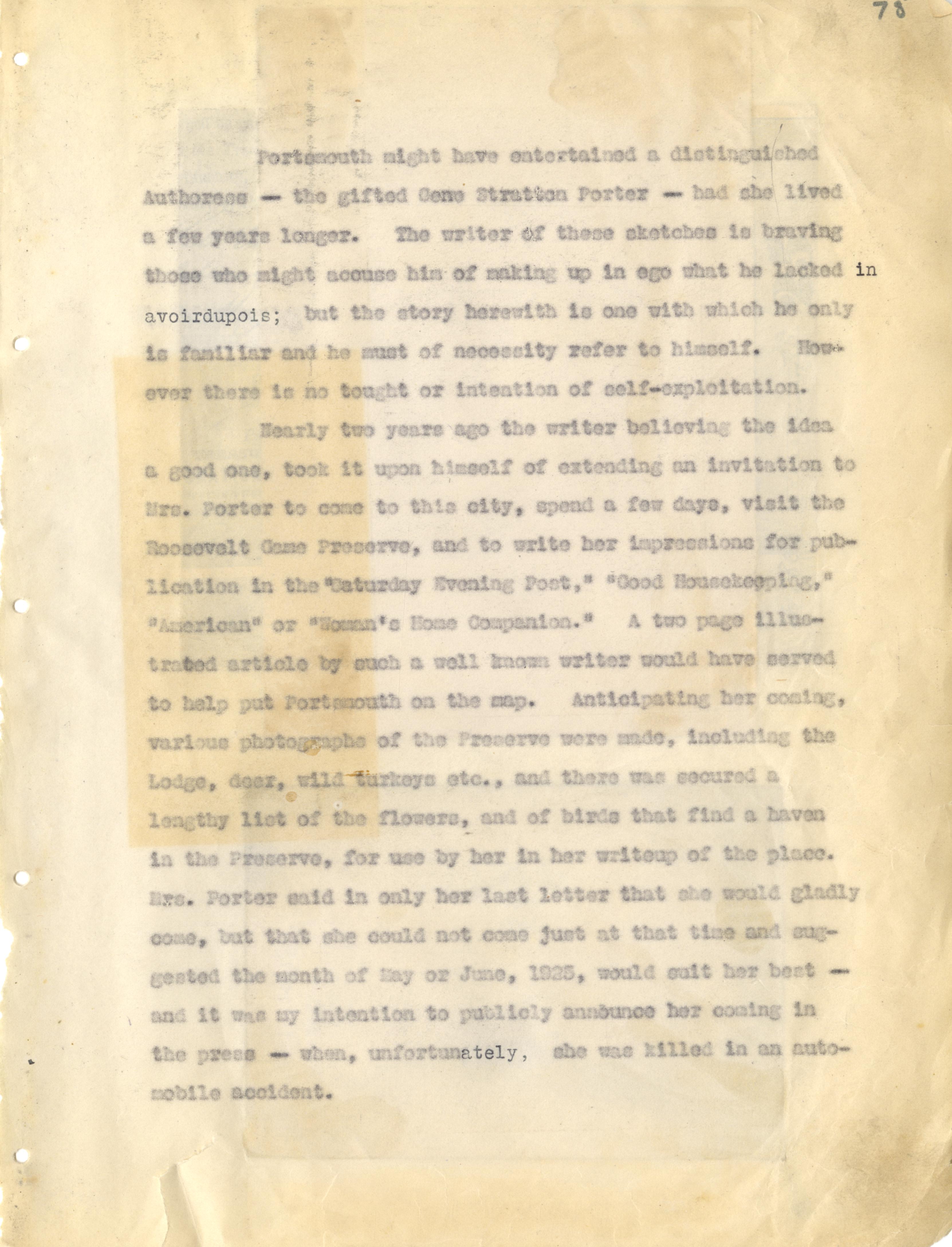 Henry A. Lorberg, “Gene Stratton Porter; Roosevelt Gene Preserve; Saturday Evening Post; Good Housekeeping; American; Woman's Home Companion,” Scioto County Public Library Local History Digital Collection, accessed December 14, 2025, https://www.sciotolibrary.org/history/items/show/24495.