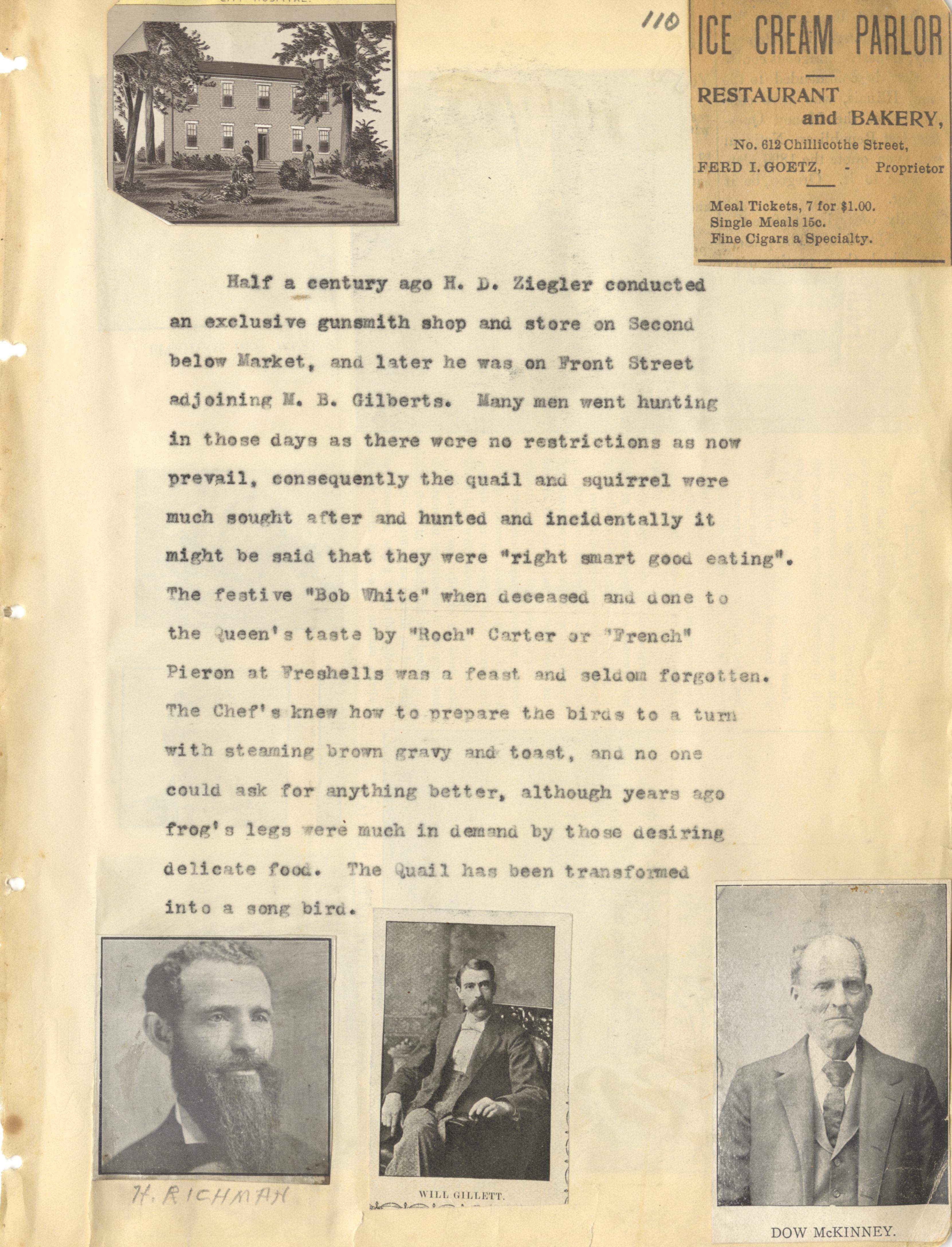 Henry A. Lorberg, “Ferd (Fred) I. Goetz; H. D. Ziegler; M. B. Gilberts; Bob White (bird); The Quail; H. Richard; Will Gillett; Dow McKinney; City Hospital,” Scioto County Public Library Local History Digital Collection, accessed December 17, 2025, https://www.sciotolibrary.org/history/items/show/24560.