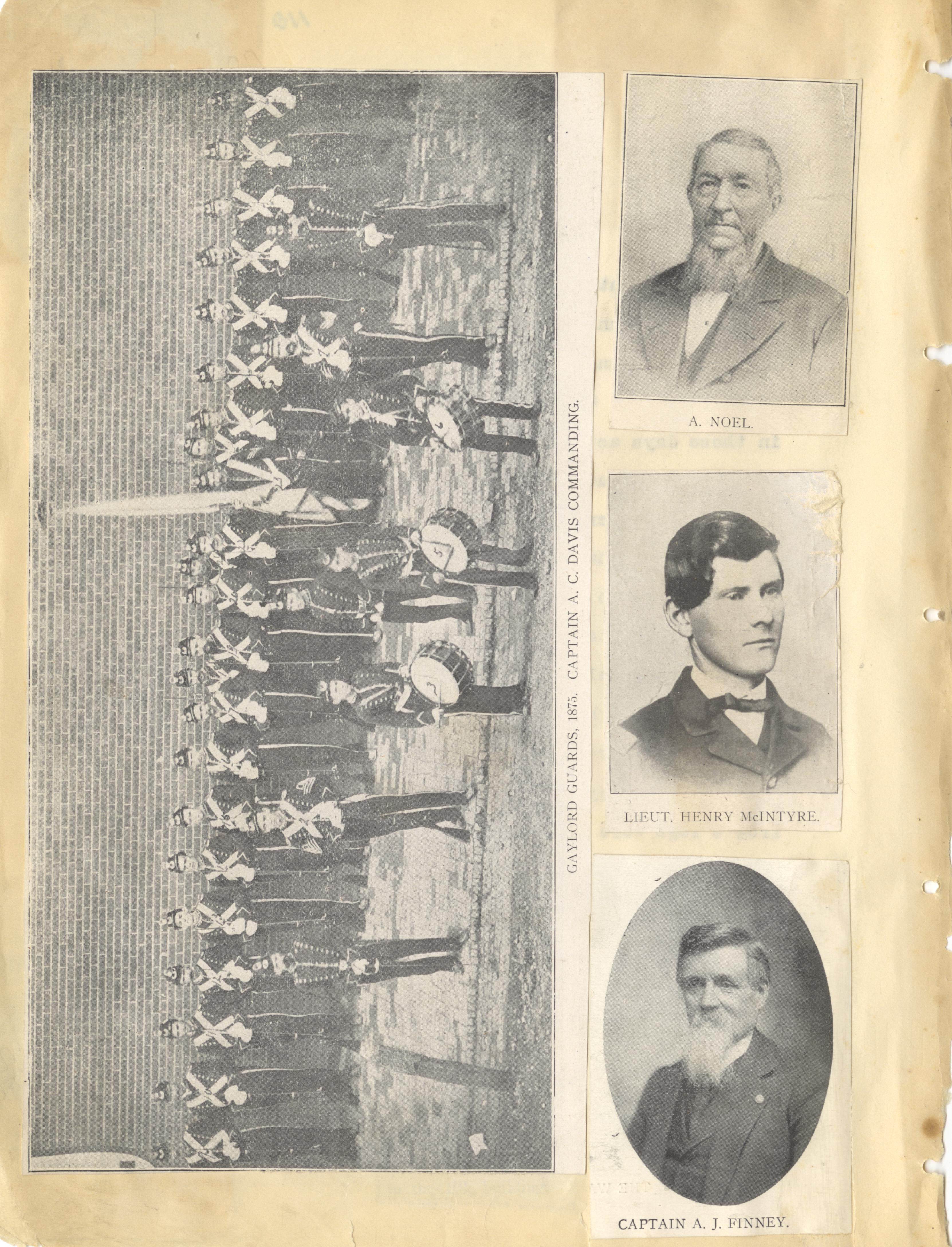 - Photo image of scanned scrapbook page. Gaylord Guards (1875); Captain C. Davis; A. Noel; Lieut. Henry McIntyre; Captain A. J. Finney