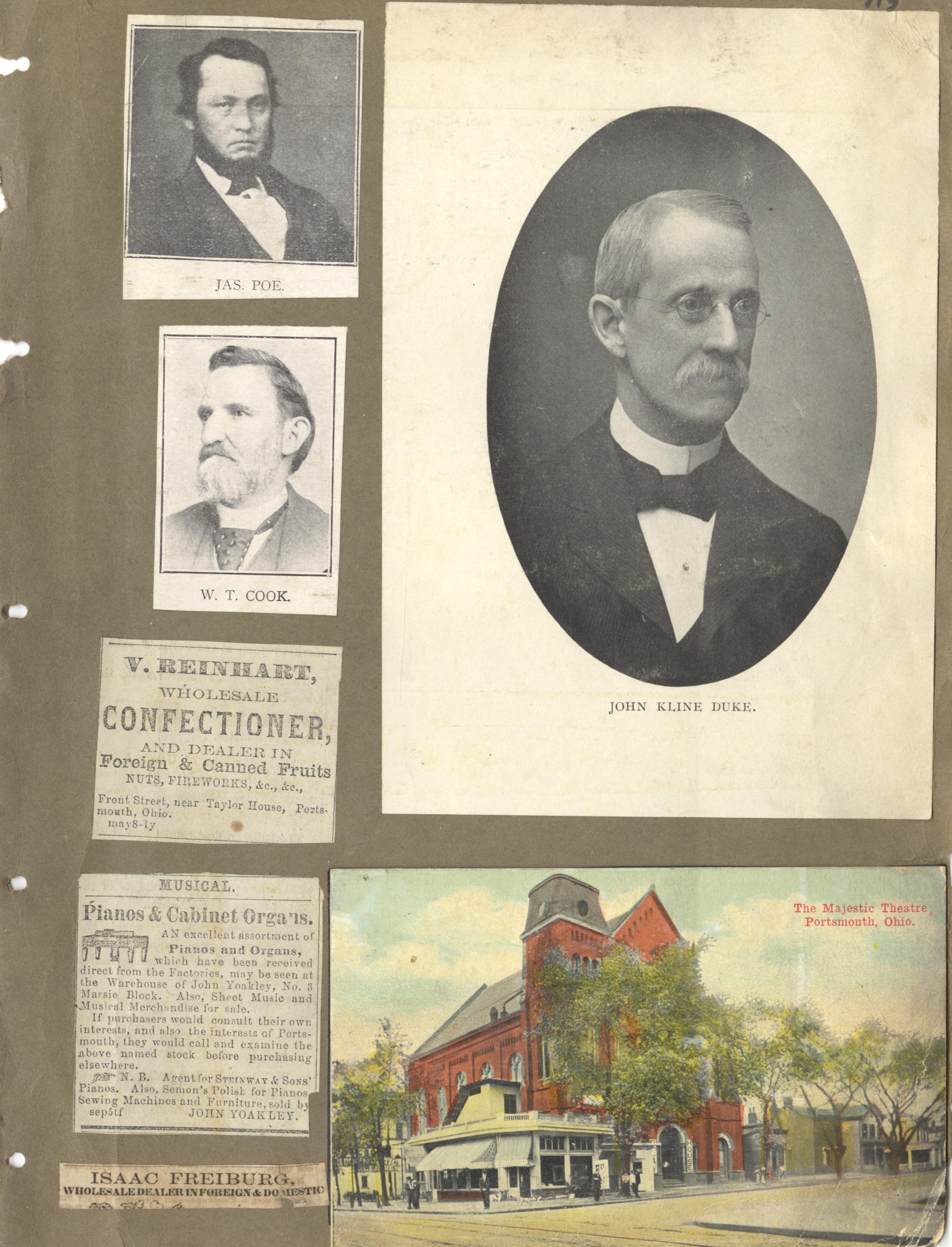 Henry A. Lorberg, “James Poe.; John Kline Duke; W. T. Cook; V. Reinhart; John Yoakley; Isaac Freiburg; The Majestic Theatre,” Scioto County Public Library Local History Digital Collection, accessed December 15, 2025, https://www.sciotolibrary.org/history/items/show/24577.
