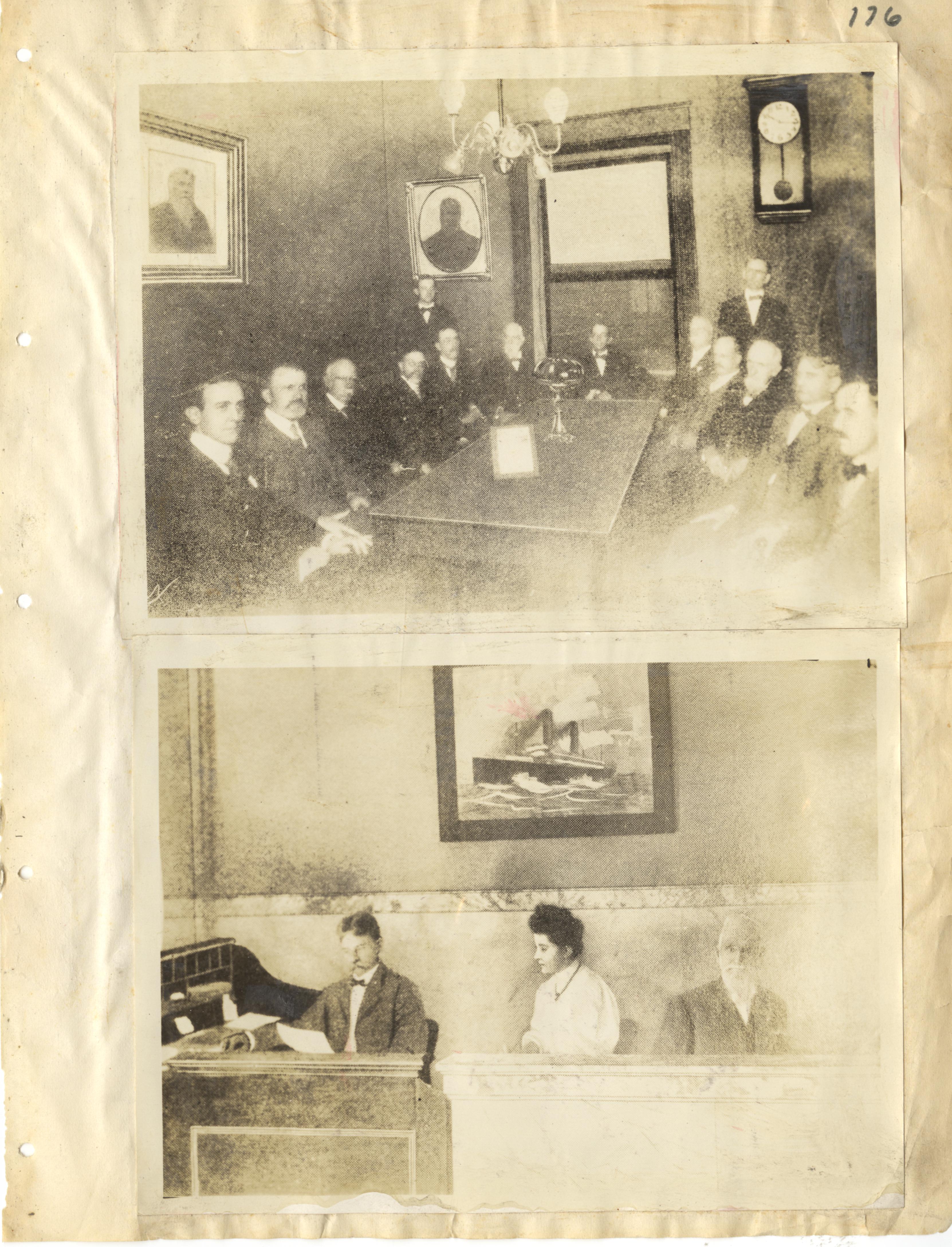 - Photo image of scanned scrapbook page 176. Unidentified Men; Unidentified Woman