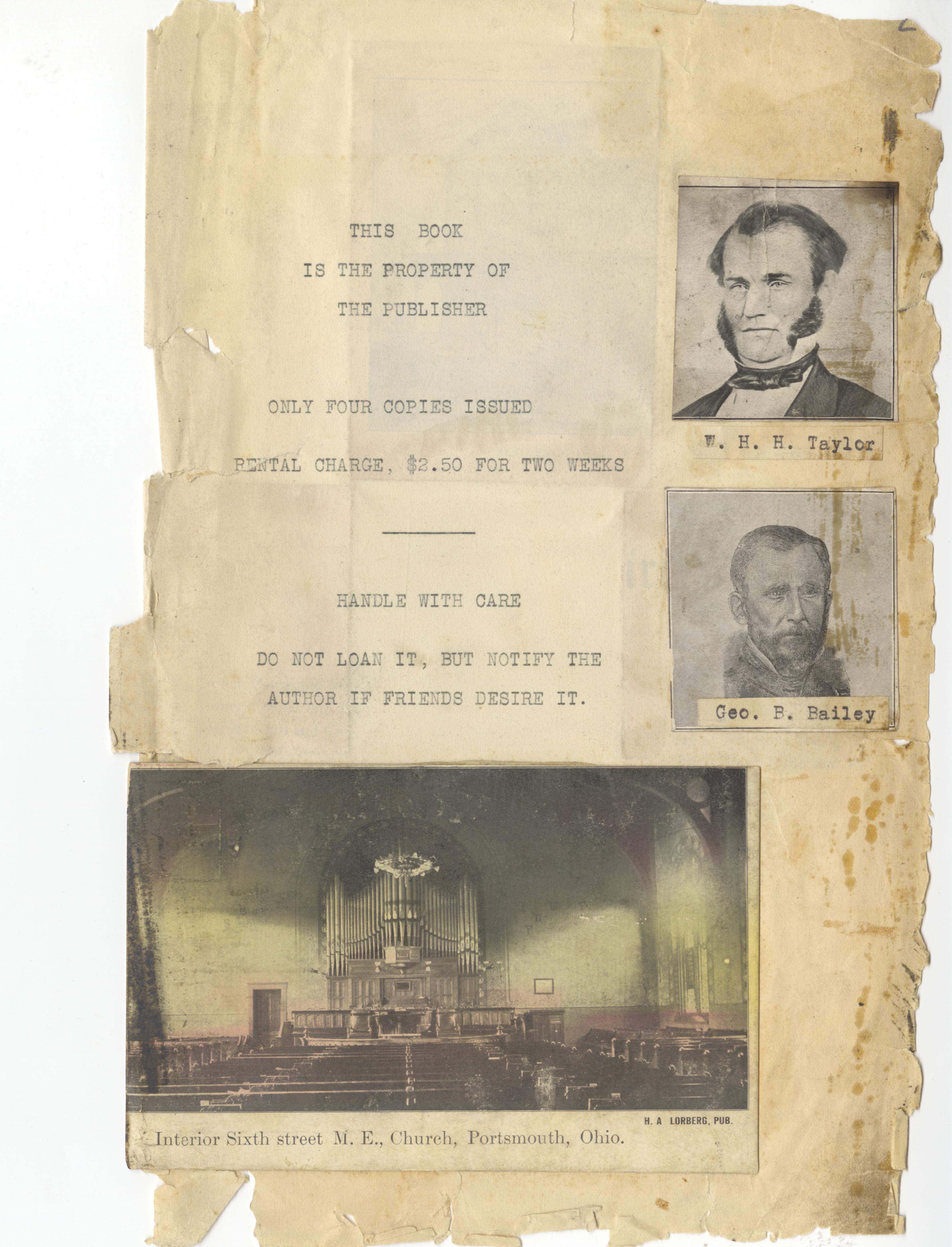 Henry A. Lorberg, “W. H. H. Taylor; George B. Bailey; Interior Sixth (6th) Street M. E. Church; H. A. Lorberg Pub.; Property of the Publisher,” Scioto County Public Library Local History Digital Collection, accessed December 15, 2025, https://sciotolibrary.org/history/items/show/24781.