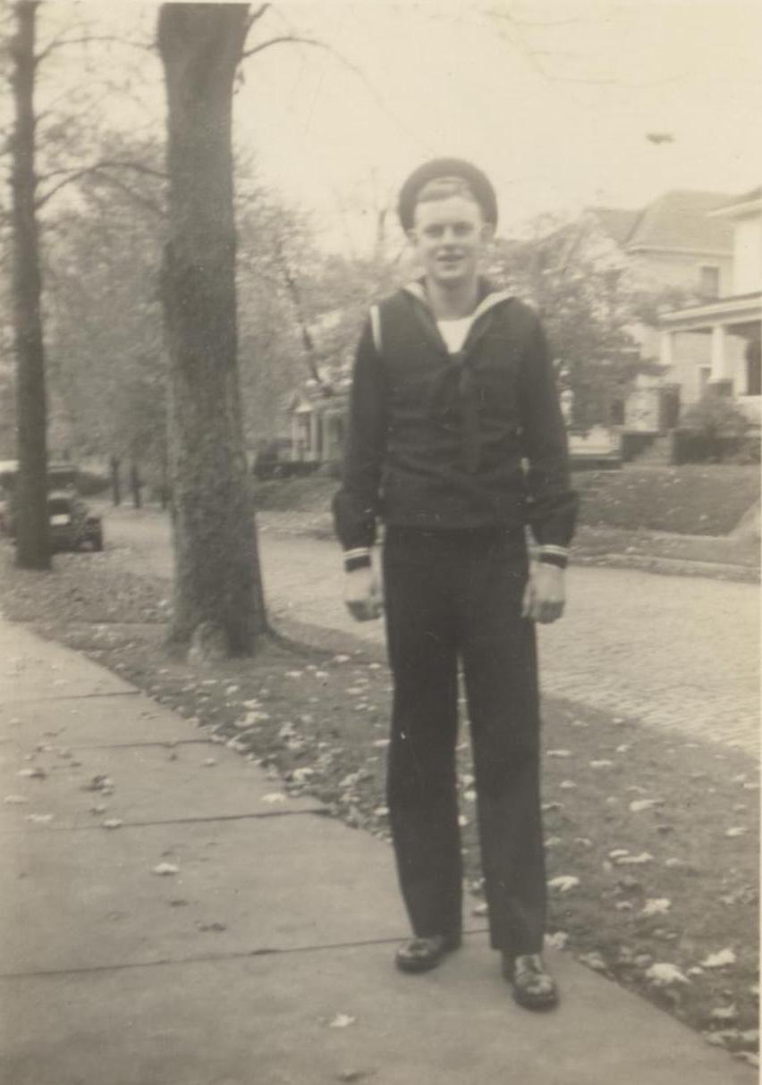 - Black and white photo image of Harry Gowdy during his time in the Navy
