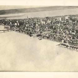 - Black and white photo image- aerial view of Portsmouth during the 1937 Flood