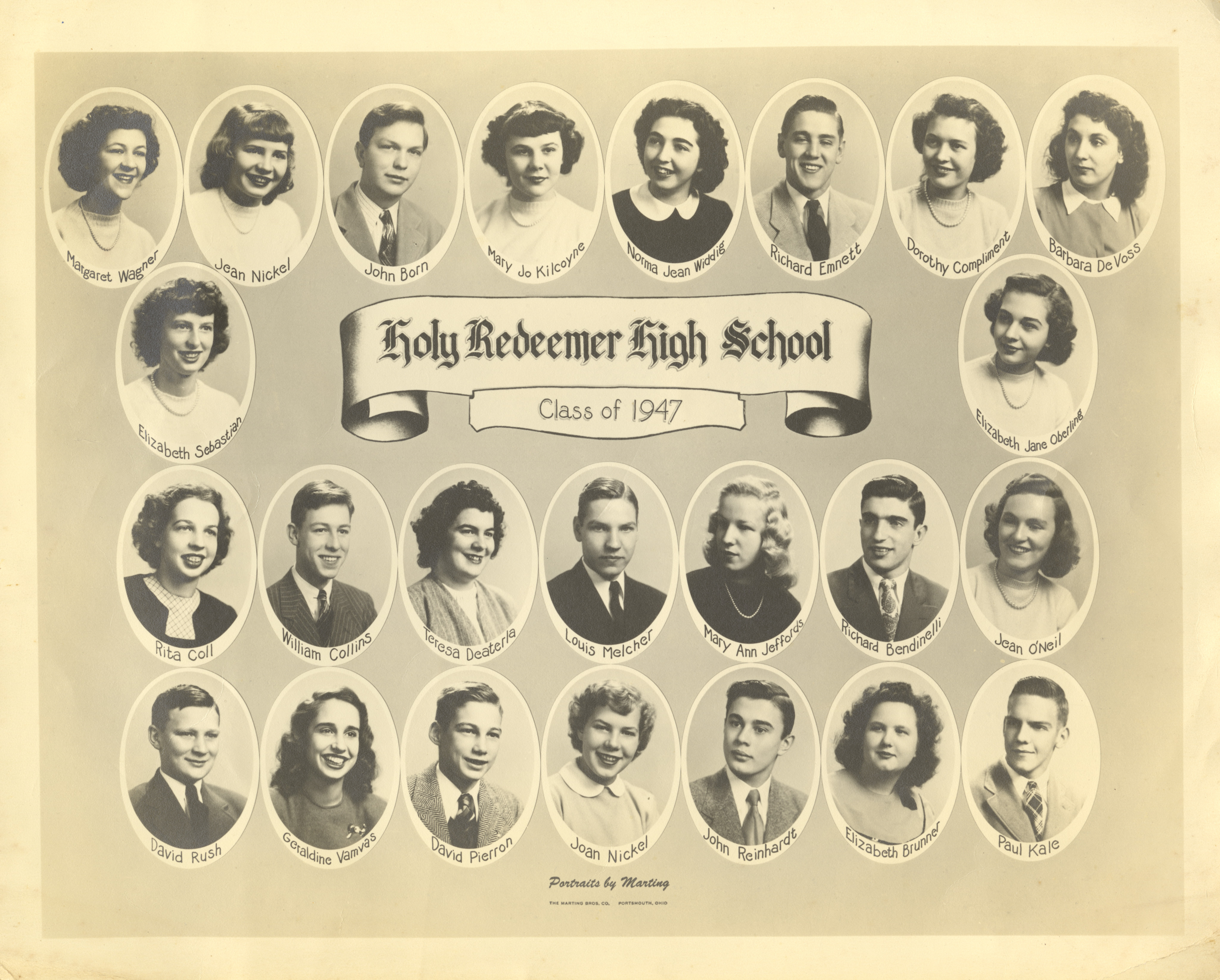 Portraits by Marting, The Marting Bros. Co., Portsmouth, Ohio, “Holy Redeemer High School Class of 1947,” Scioto County Public Library Local History Digital Collection, accessed December 5, 2025, https://www.sciotolibrary.org/history/items/show/26566.