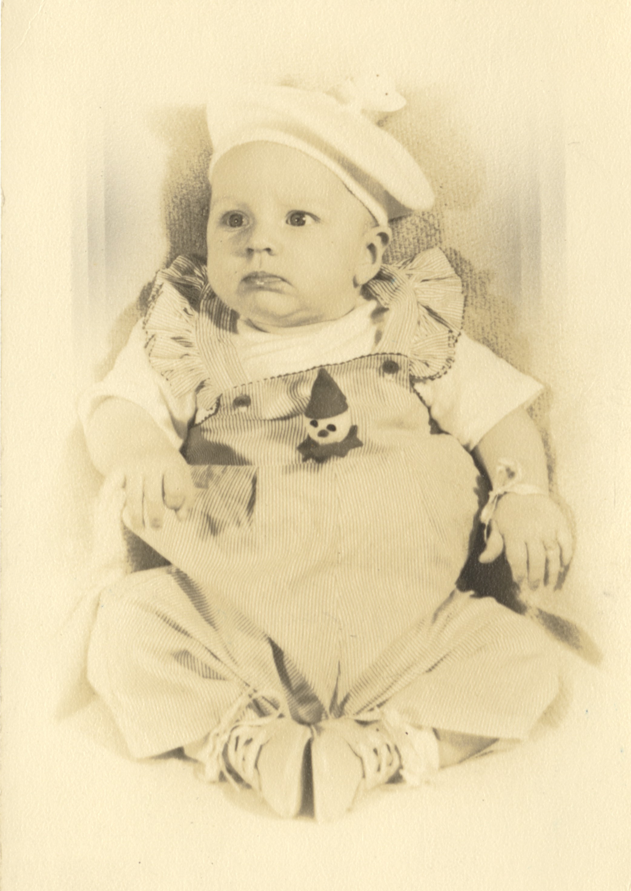 - Sepia tone photo image on cardstock of Florence Jo Ratcliff, age 3 months. Florence measured 7 pounds, 8 ounces when born on February 5, 1958.
