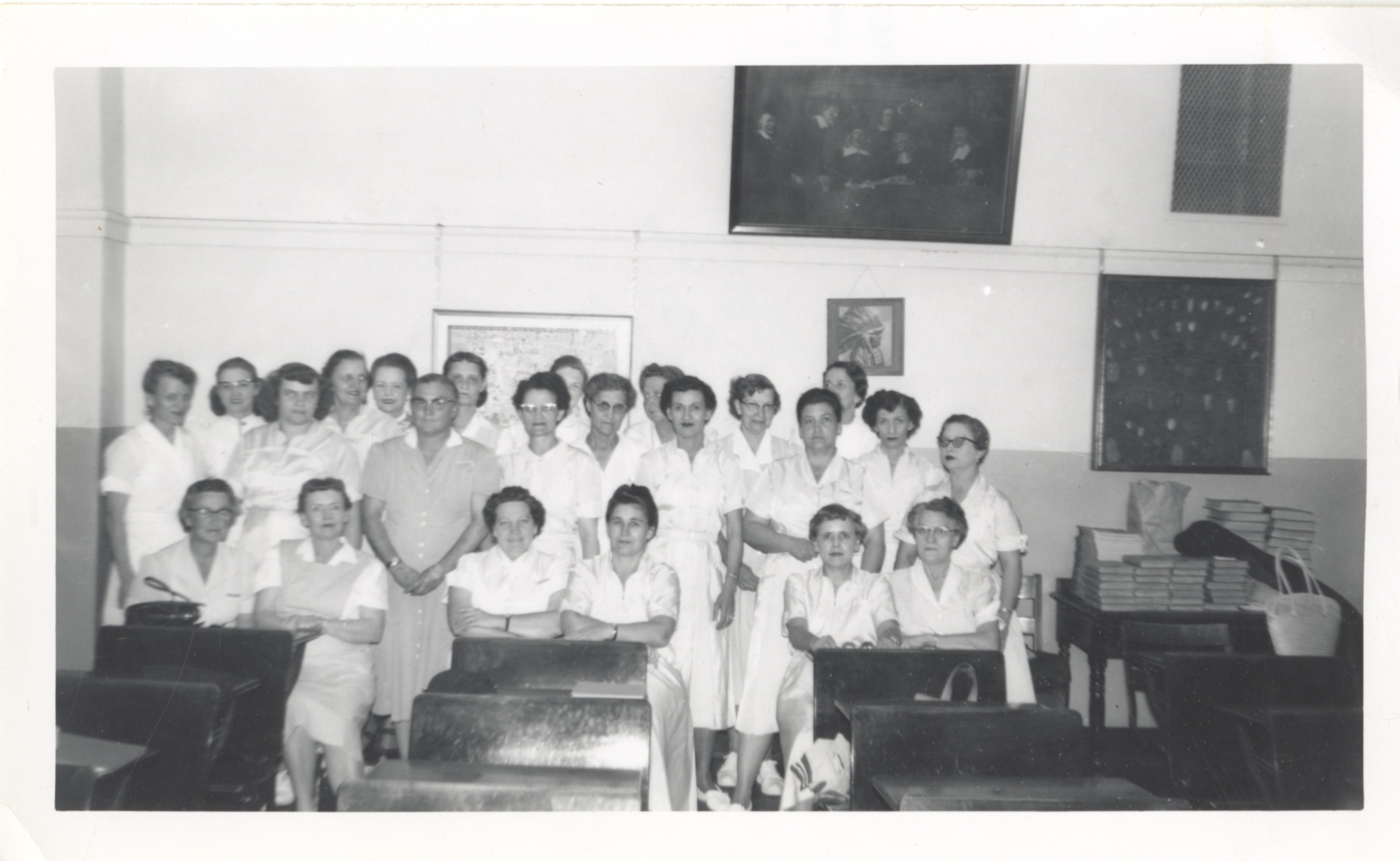 - Black and white photo image of a group of nurses.