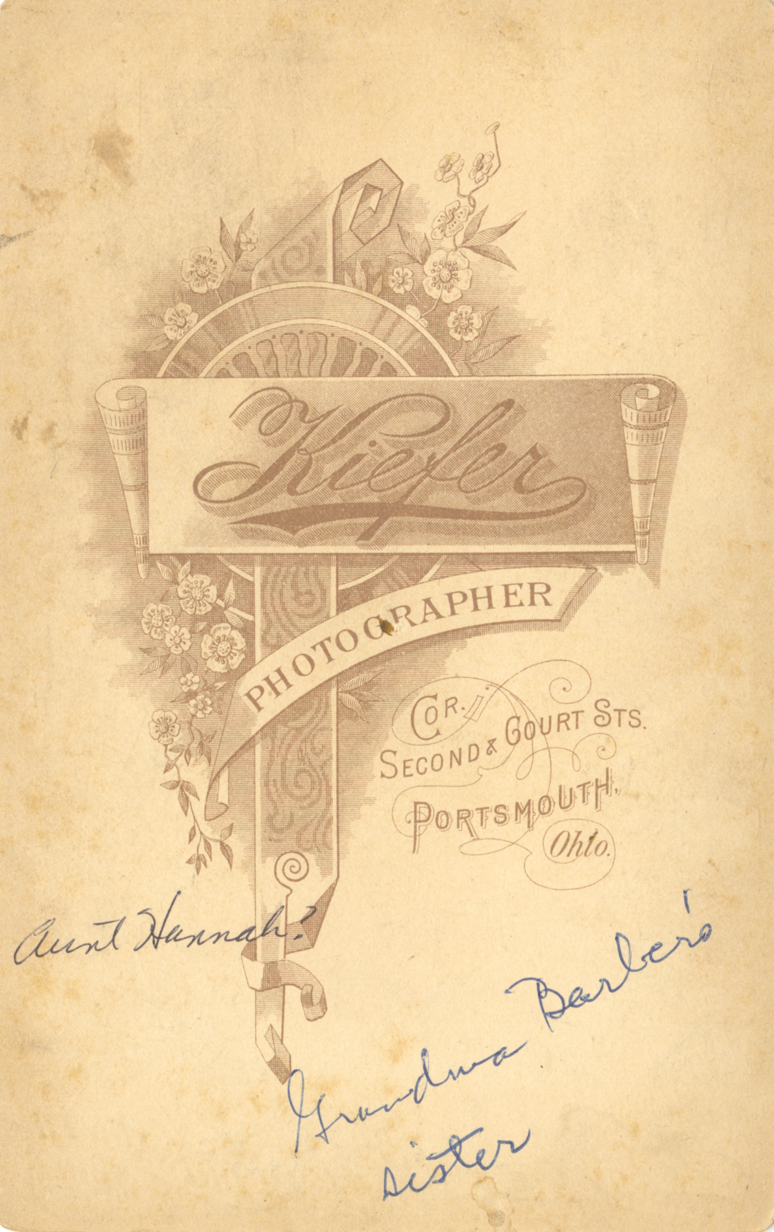 Kiefer, Photographer; Corner of Second (2nd) and Court Streets, Portsmouth, Ohio, “Grandma Barber,” Scioto County Public Library Local History Digital Collection, accessed December 14, 2025, https://www.sciotolibrary.org/history/items/show/27457.