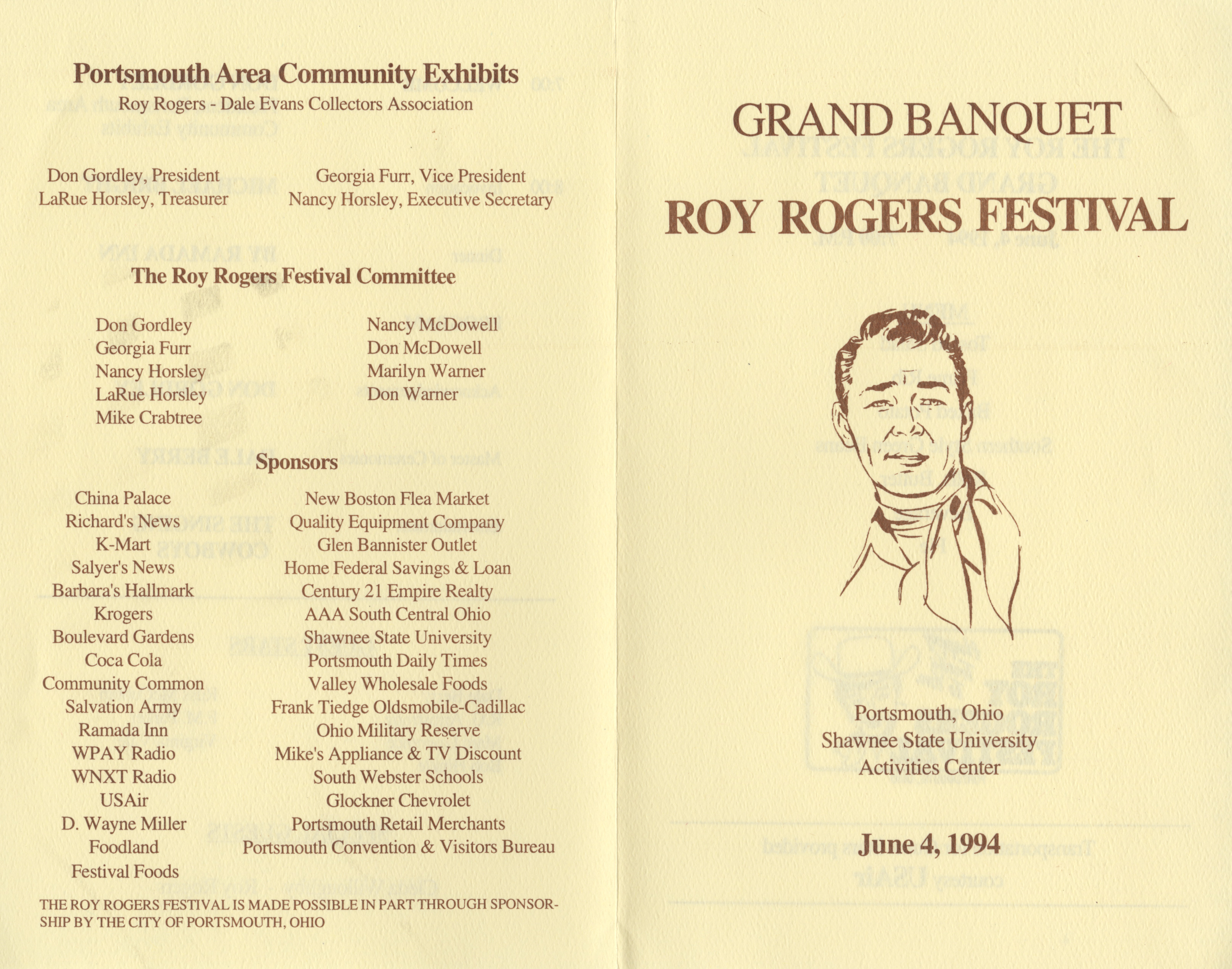 Unknown, “Grand Banquet Roy Rogers Festival 1994,” Scioto County Public Library Local History Digital Collection, accessed December 5, 2025, https://www.sciotolibrary.org/history/items/show/27460.