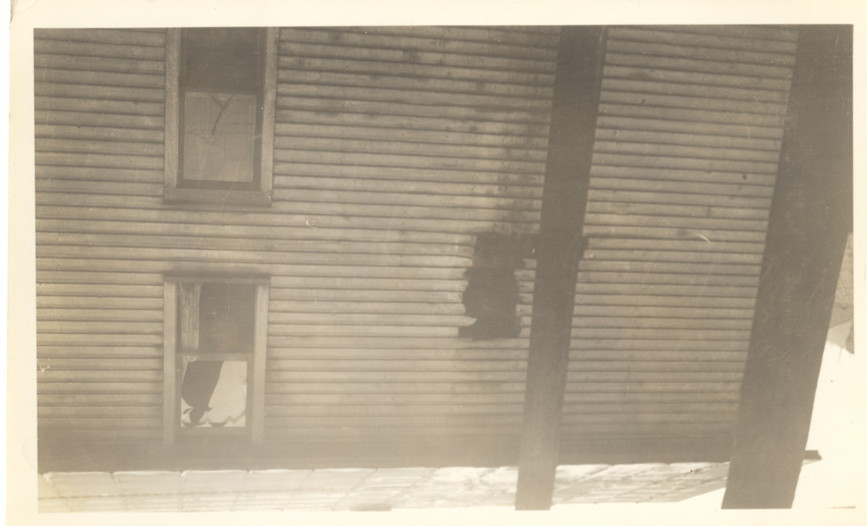 - Black and white photo image of the house rear of the house on Gallia Street from a Norfolk vent fire.