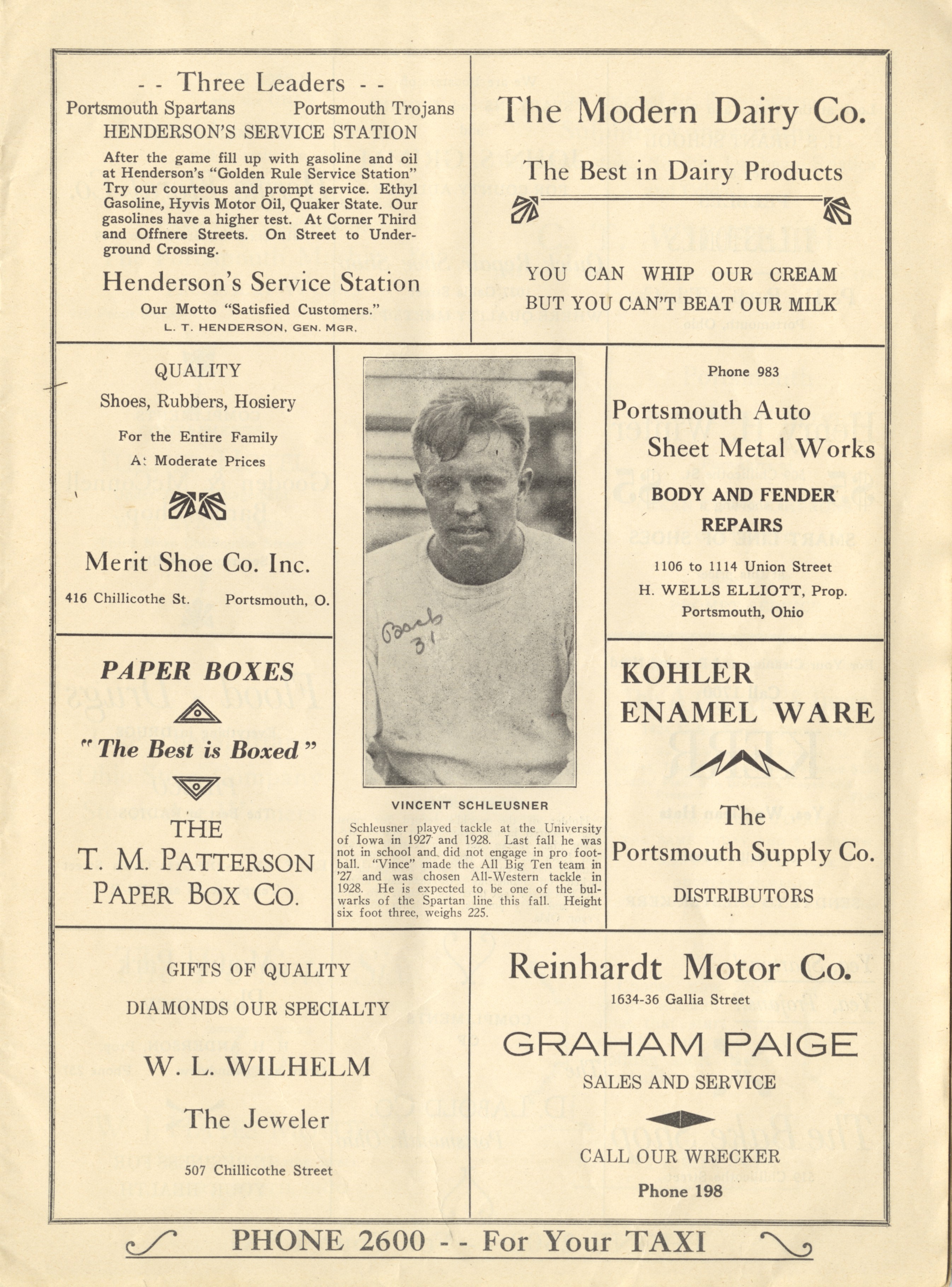 The Kah-Patterson Co. Printers, Portsmouth, Ohio, “Spartans Vs. Chicago Bears Official Program,” Scioto County Public Library Local History Digital Collection, accessed December 14, 2025, https://www.sciotolibrary.org/history/items/show/28440.