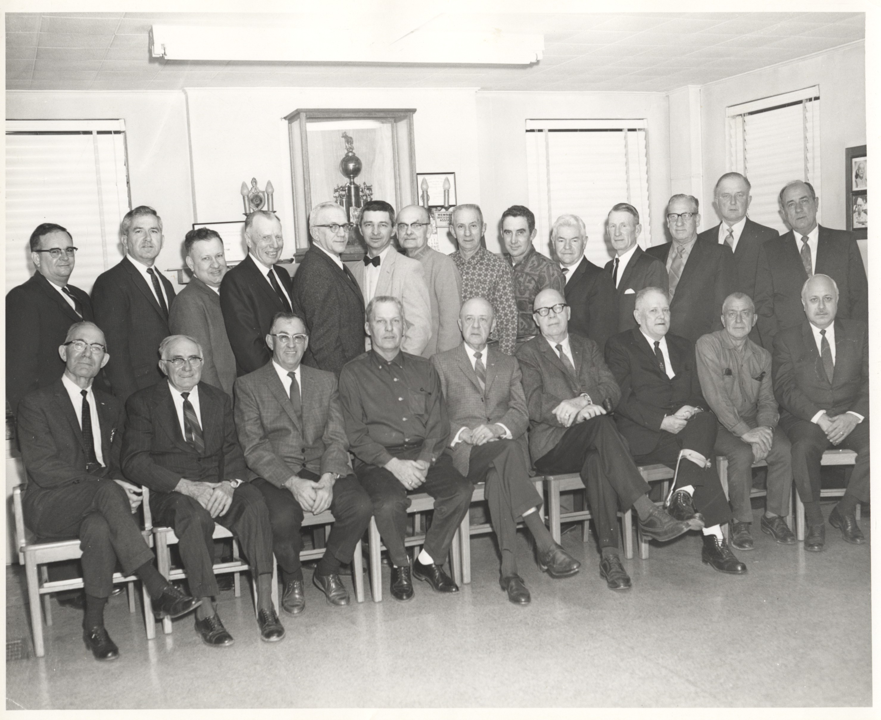 Standing (L-R) Ivan A. Scott, John Mowbray, Albert Malone, George E. Wood, Donald Stockham Jr., Ralph John Lewis, Clifford M. Purdy, Marion Bennett, Orville D. Gable, Paul Doyle, Donald McKenzie, Cline Gilpin, Joseph Brisker, M. B. Robert Herald. - Date
