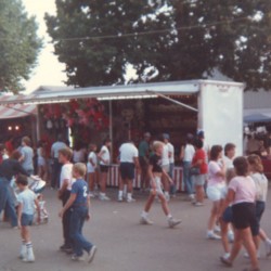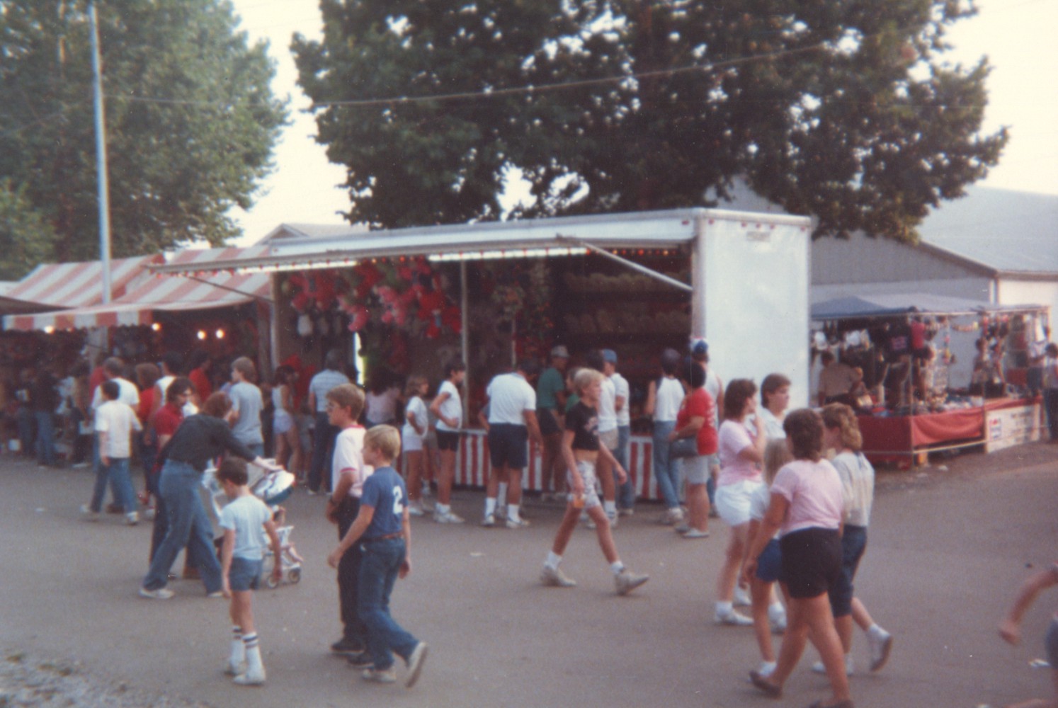 - scan of color photo of some fairgoers moving around in front of some gaming stands.