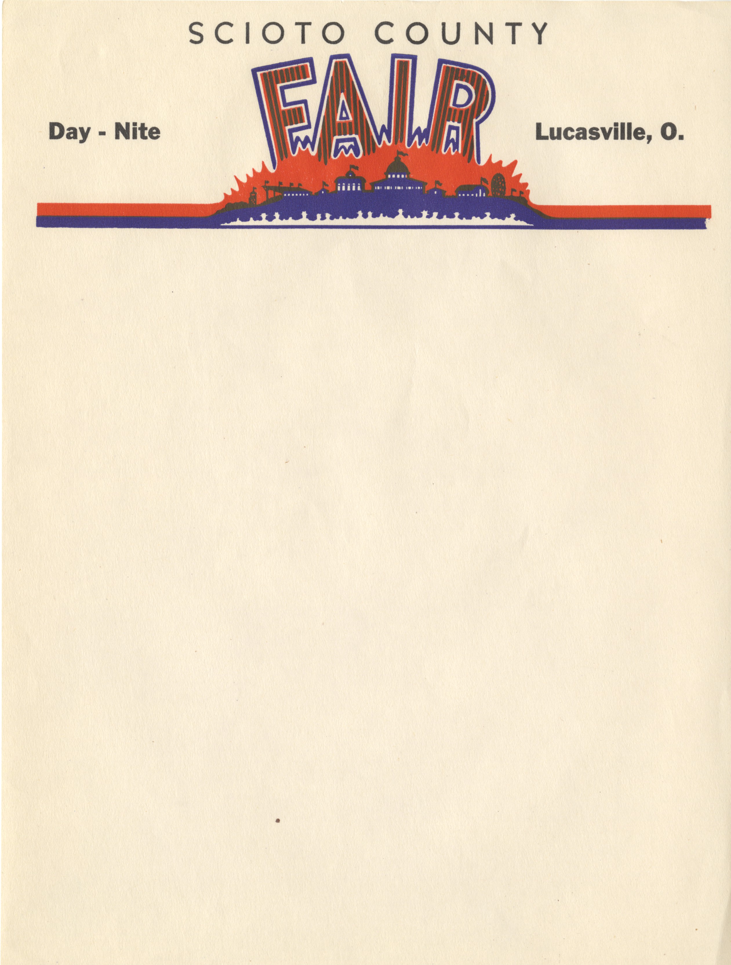 unknown, “Scioto County Fairground Stationary,” Scioto County Public Library Local History Digital Collection, accessed December 6, 2025, https://www.sciotolibrary.org/history/items/show/28565.