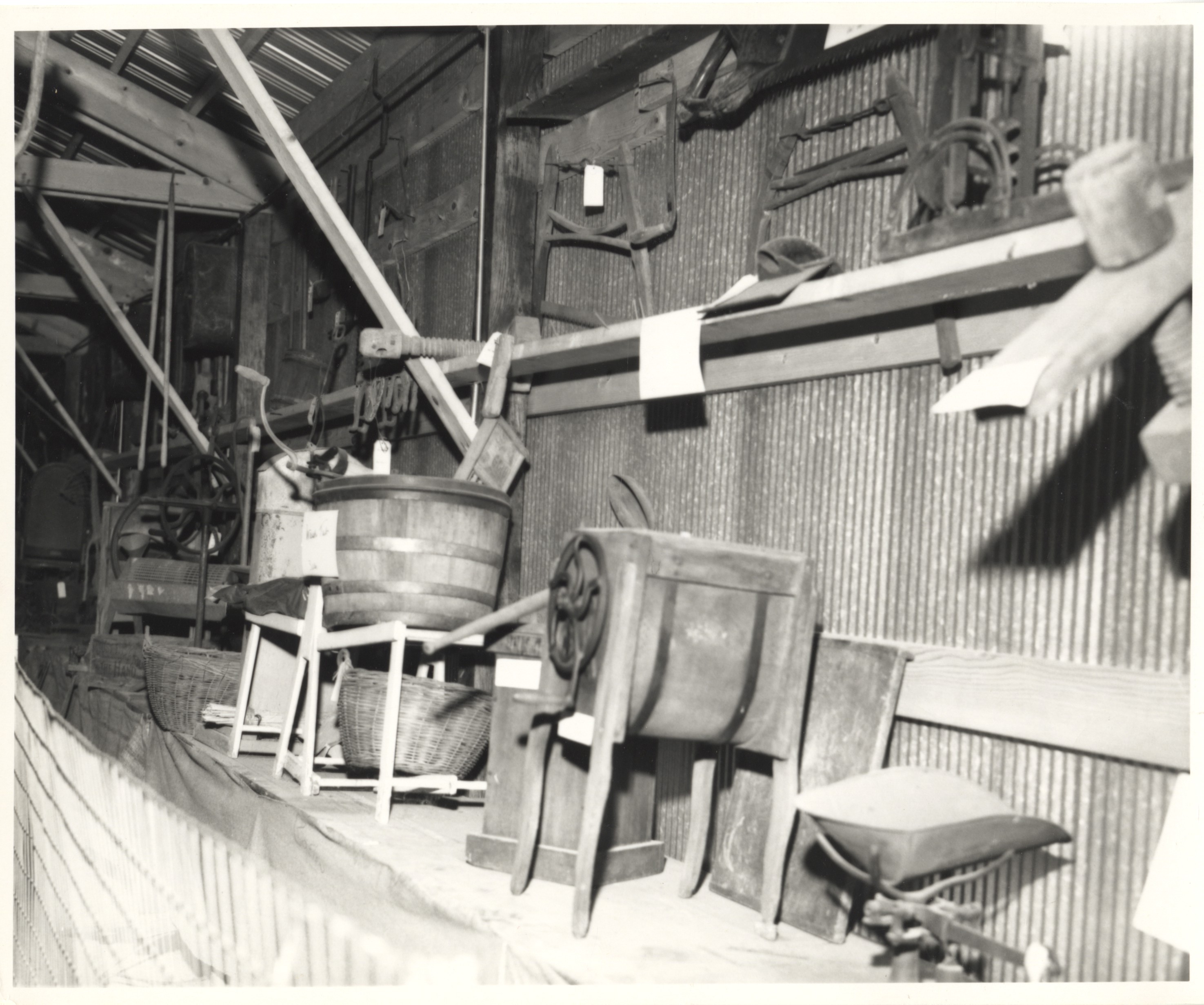 - scan of black and white photo of antiques on display for the fair in 1969.